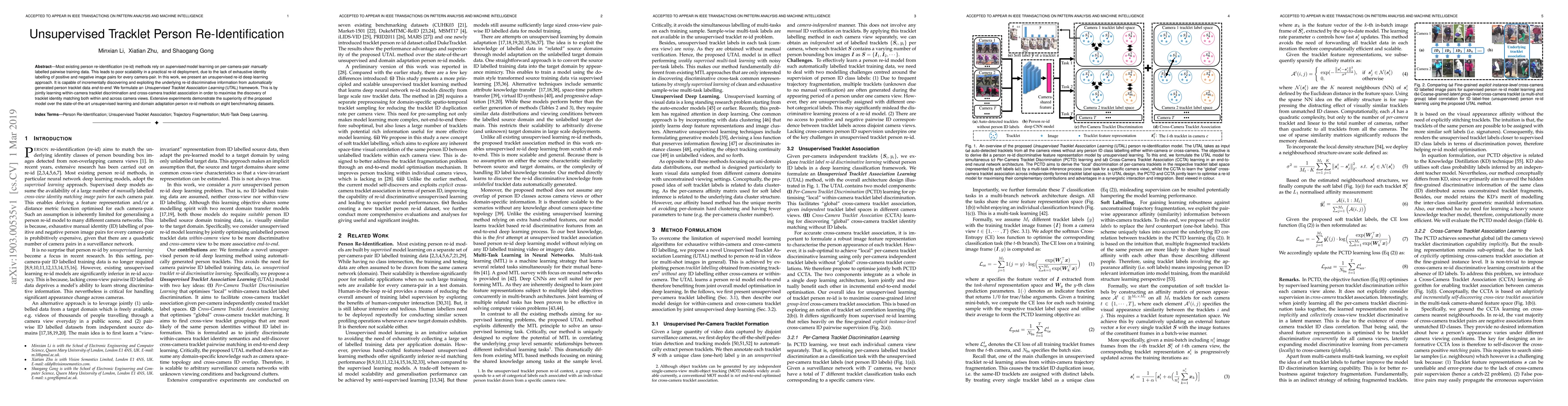 This paper proposes an unsupervised deep learning approach for person re-identification (re-id) that leverages automatically generated tracklet data without requiring manually labelled training data. The Unsupervised Tracklet Association Learning (UTAL) framework maximizes tracklet identity matching within and across camera views, demonstrating superior performance compared to state-of-the-art methods on multiple datasets.