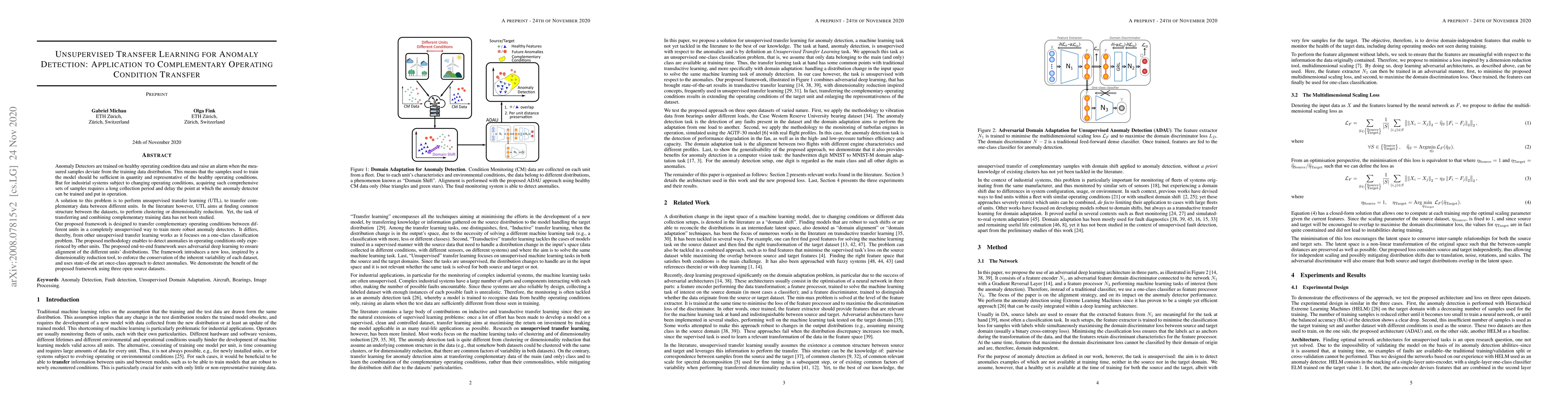 This paper proposes an unsupervised transfer learning framework for anomaly detection across different operating conditions, leveraging adversarial deep learning to align data distributions without labeled data. The method aims to detect anomalies experienced by other units by transferring complementary data, enhancing the robustness of anomaly detectors.