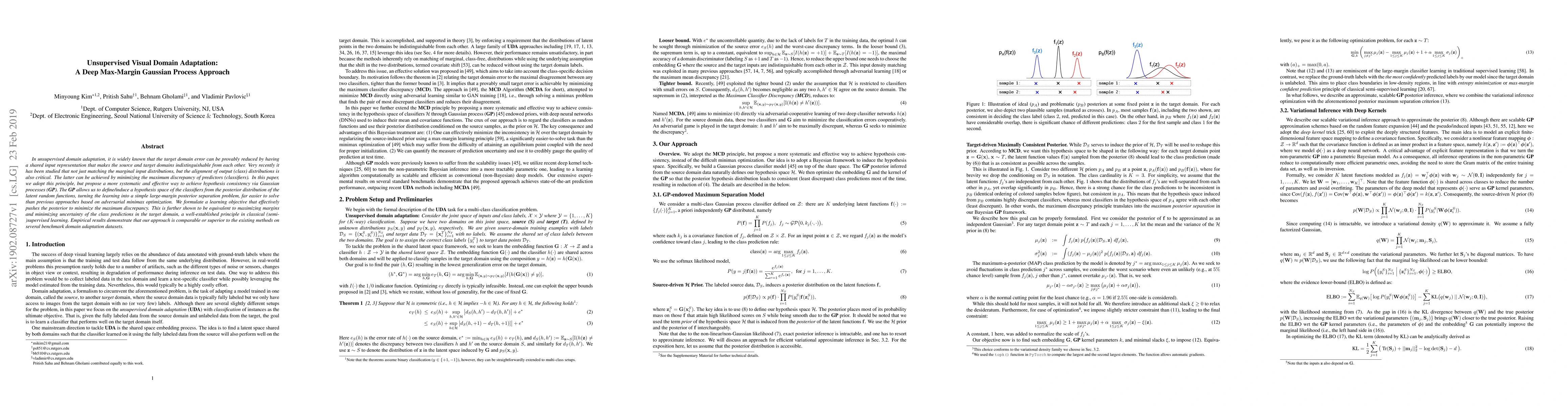 This paper proposes a new approach to unsupervised visual domain adaptation using Gaussian processes that minimizes the maximum discrepancy of classifiers, achieving comparable or superior results on benchmark datasets.