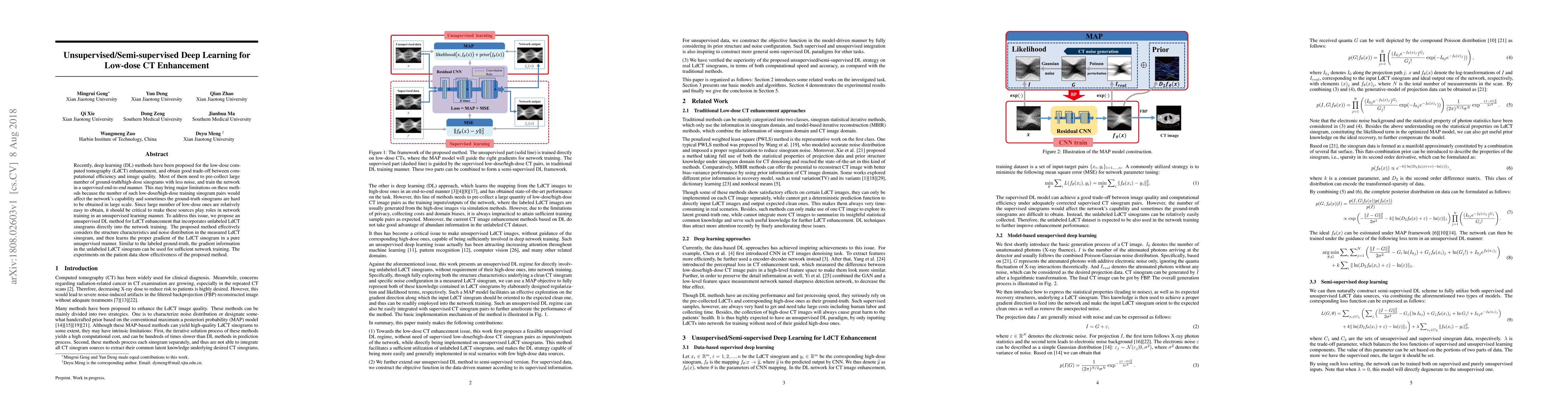 A new deep learning method for low-dose CT enhancement uses unlabeled sinograms to train a network in an unsupervised manner, improving efficiency and effectiveness without requiring large amounts of labeled data.