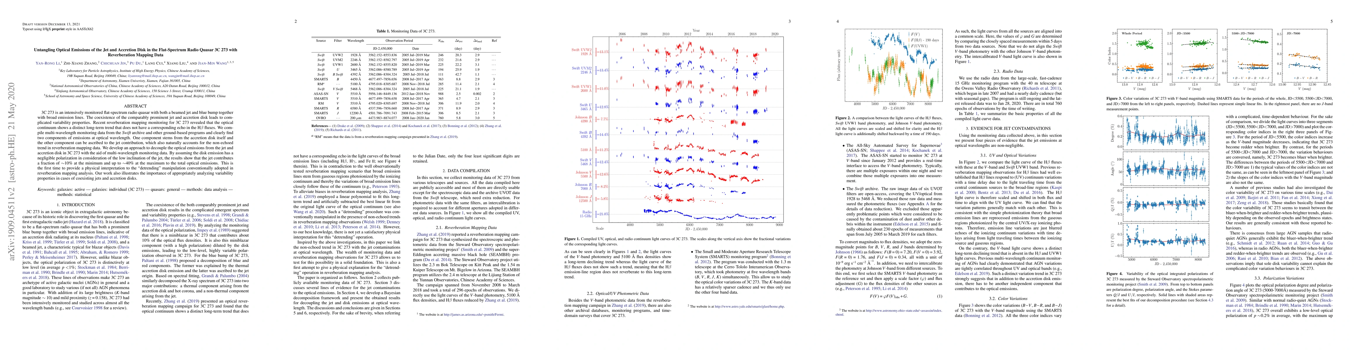 This paper disentangles the optical emissions from the jet and accretion disk in the quasar 3C 273 using multi-wavelength monitoring data. The study reveals that the jet contributes up to 40% of the optical emissions, providing a physical interpretation for the "detrending" technique in reverberation mapping.