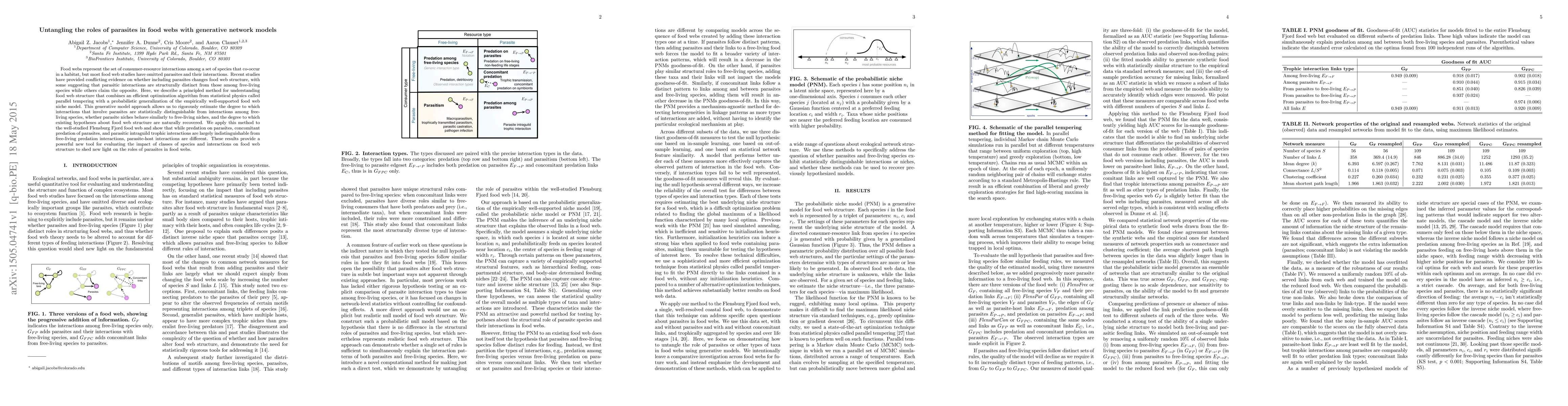 Food webs represent the set of consumer-resource interactions among a set of species that co-occur in a habitat, but most food web studies have omitted parasites and their interactions. Recent studies have provided conflicting evidence on whether including parasites changes food web structure, with some suggesting that parasitic interactions are structurally distinct from those among free-living species while others claim the opposite. Here, we describe a principled method for understanding food web structure that combines an efficient optimization algorithm from statistical physics called parallel tempering with a probabilistic generalization of the empirically well-supported food web niche model. This generative model approach allows us to rigorously estimate the degree to which interactions that involve parasites are statistically distinguishable from interactions among free-living species, whether parasite niches behave similarly to free-living niches, and the degree to which existing hypotheses about food web structure are naturally recovered. We apply this method to the well-studied Flensburg Fjord food web and show that while predation on parasites, concomitant predation of parasites, and parasitic intraguild trophic interactions are largely indistinguishable from free-living predation interactions, parasite-host interactions are different. These results provide a powerful new tool for evaluating the impact of classes of species and interactions on food web structure to shed new light on the roles of parasites in food webs