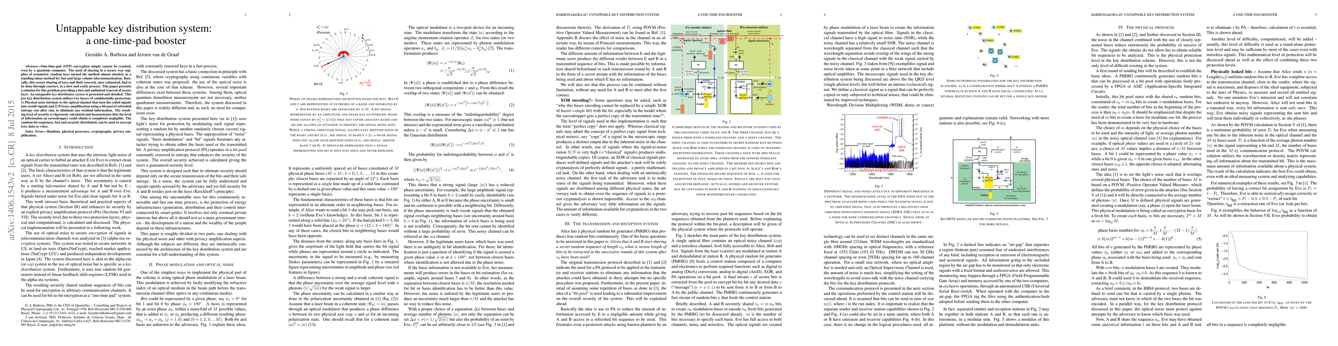 This paper proposes an untappable key distribution system to enhance one-time-pad encryption by providing a fast and secure method for key renewal. It employs physical noise in optical channels and privacy amplification for robust security, ensuring negligible information leakage for eavesdroppers.