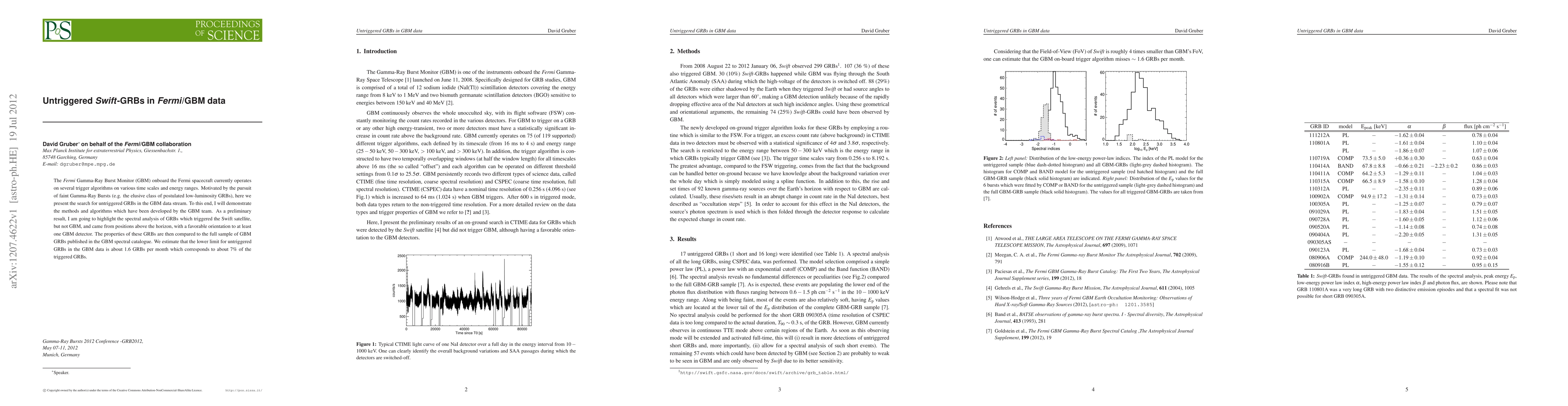 This paper investigates the search for untriggered Gamma-Ray Bursts (GRBs) in the Fermi Gamma-Ray Burst Monitor (GBM) data, focusing on faint, low-luminosity GRBs. Preliminary results show that about 1.6 untriggered GRBs per month, or 7% of triggered GRBs, are likely present in the GBM data.
