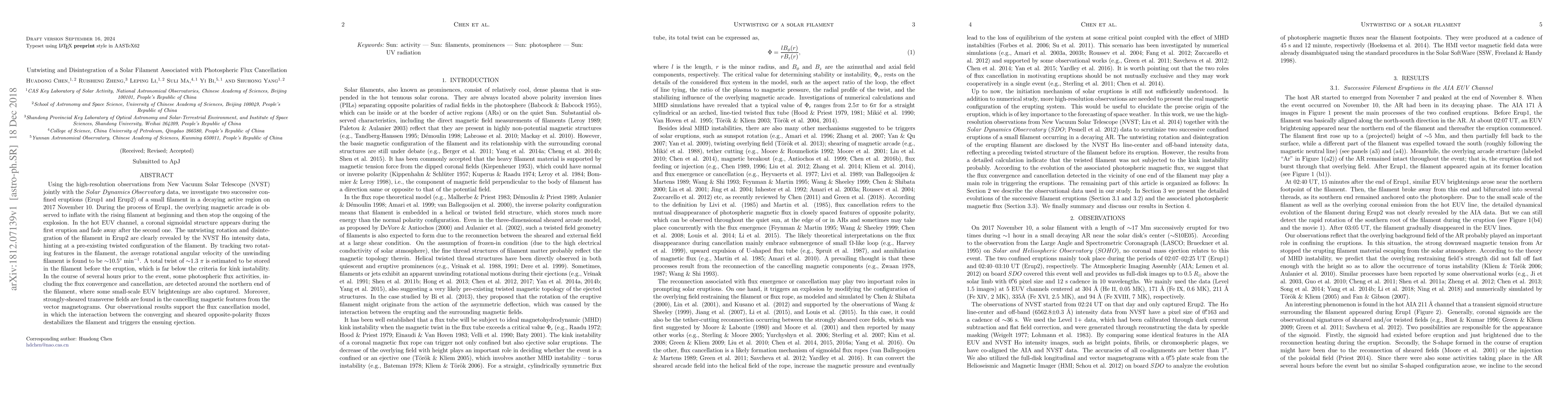 Using the high-resolution observations from New Vacuum Solar Telescope (NVST) jointly with the Solar Dynamics Observatory data, we investigate two successive confined eruptions (Erup1 and Erup2) of a small filament in a decaying active region on 2017 November 10. During the process of Erup1, the overlying magnetic arcade is observed to inflate with the rising filament at beginning and then stop the ongoing of the explosion. In the hot EUV channel, a coronal sigmoidal structure appears during the first eruption and fade away after the second one. The untwisting rotation and disintegration of the filament in Erup2 are clearly revealed by the NVST H_alpha intensity data, hinting at a pre-existing twisted configuration of the filament. By tracking two rotating features in the filament, the average rotational angular velocity of the unwinding filament is found to be ~10.5 degree/min. A total twist of ~1.3 pi is estimated to be stored in the filament before the eruption, which is far below the criteria for kink instability. In the course of several hours prior to the event, some photospheric flux activities, including the flux convergence and cancellation, are detected around the northern end of the filament, where some small-scale EUV brightenings are also captured. Moreover, strongly-sheared transverse fields are found in the cancelling magnetic features from the vector magnetograms. Our observational results support the flux cancellation model, in which the interaction between the converging and sheared opposite-polarity fluxes destabilizes the filament and triggers the ensuing ejection.