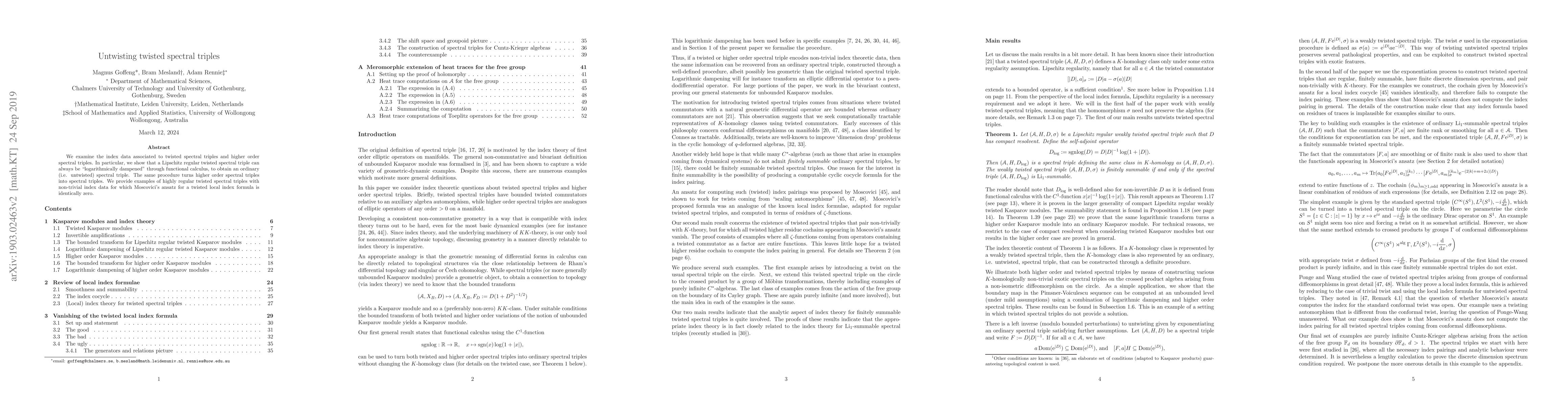 The paper demonstrates how to transform Lipschitz regular twisted spectral triples into ordinary spectral triples via logarithmic dampening, and extends this method to higher order spectral triples. It also presents examples where Moscovici's twisted local index formula yields zero despite nontrivial index data.