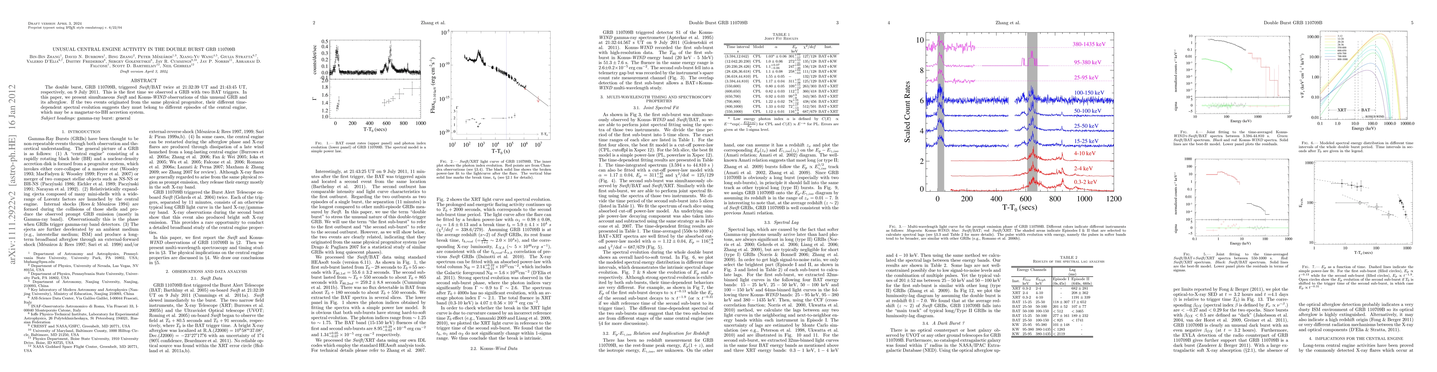 Researchers studied a double burst GRB 110709B, observing two BAT triggers from the same physical progenitor, suggesting different episodes of a magnetar-to-BH accretion system.