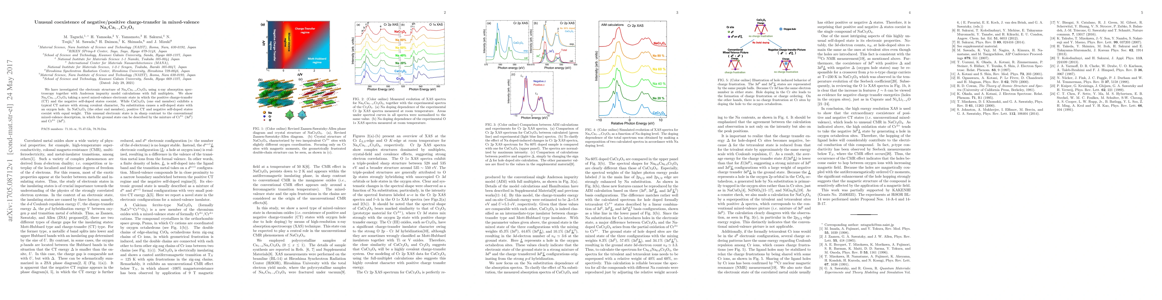 This study reveals that Na$_x$Ca$_{1-x}$Cr$_2$O$_4$ exhibits an unusual mixed-valence electronic state where both positive charge-transfer and negative self-doped states coexist, contrasting conventional mixed-valence descriptions. This coexistence is induced by Na substitution, leading to an oxygen hole in the structure.