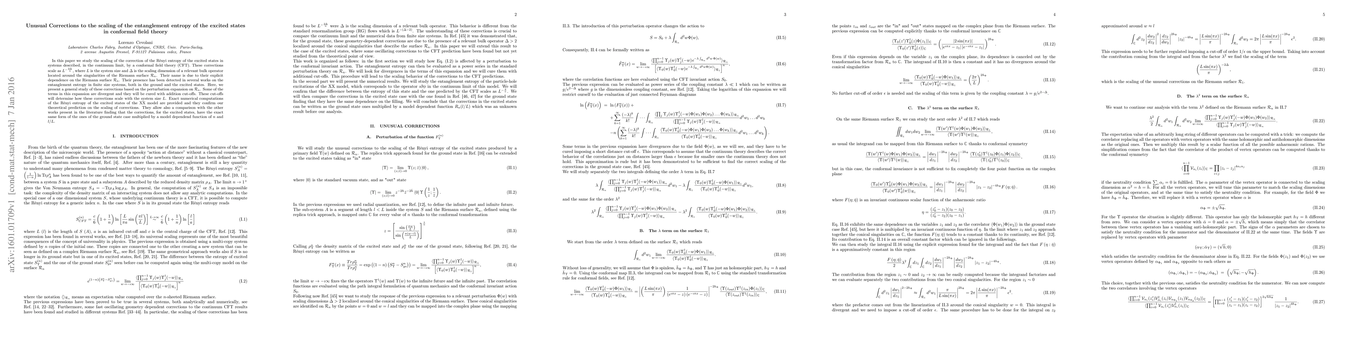 This paper investigates the unusual scaling corrections to the Renyi entropy of excited states in conformal field theories, revealing a dependence on the Riemann surface $\mathcal{R}_n$ and system size $L$. Theoretical predictions are confirmed by numerical computations of the XX model, showing that these corrections follow the same form as those in ground states but scaled by a model-dependent function.