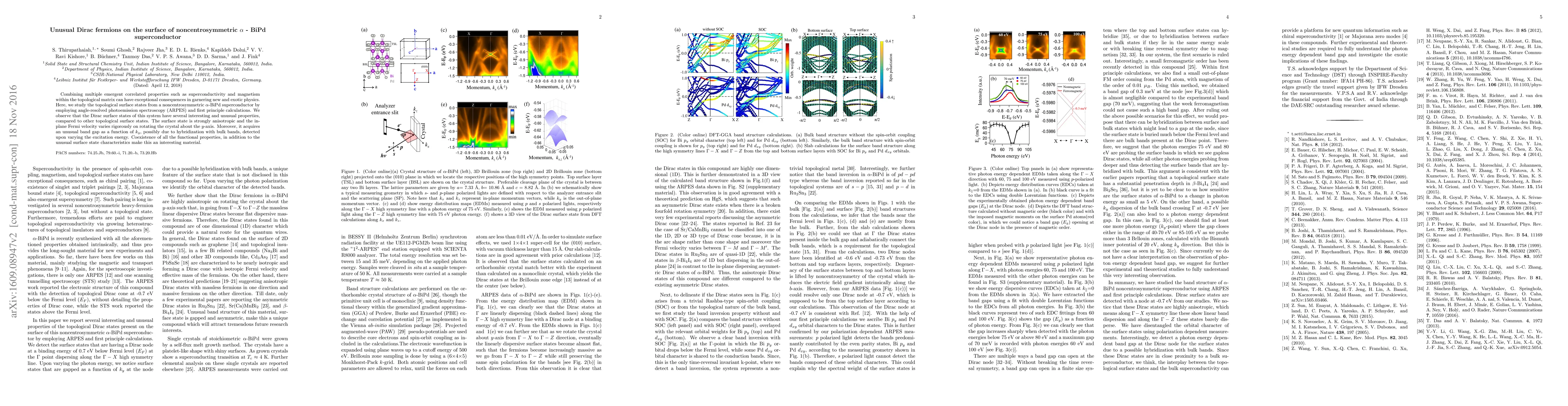 Combining multiple emergent correlated properties such as superconductivity and magnetism within the topological matrix can have exceptional consequences in garnering new and exotic physics. Here, we study the topological surface states from a noncentrosymmetric $\alpha$-BiPd superconductor by employing angle-resolved photoemission spectroscopy (ARPES) and first principle calculations. We observe that the Dirac surface states of this system have several interesting and unusual properties, compared to other topological surface states. The surface state is strongly anisotropic and the in-plane Fermi velocity varies rigorously on rotating the crystal about the $y$-axis. Moreover, it acquires an unusual band gap as a function of $k_y$, possibly due to hybridization with bulk bands, detected upon varying the excitation energy. Coexistence of all the functional properties, in addition to the unusual surface state characteristics make this an interesting material.