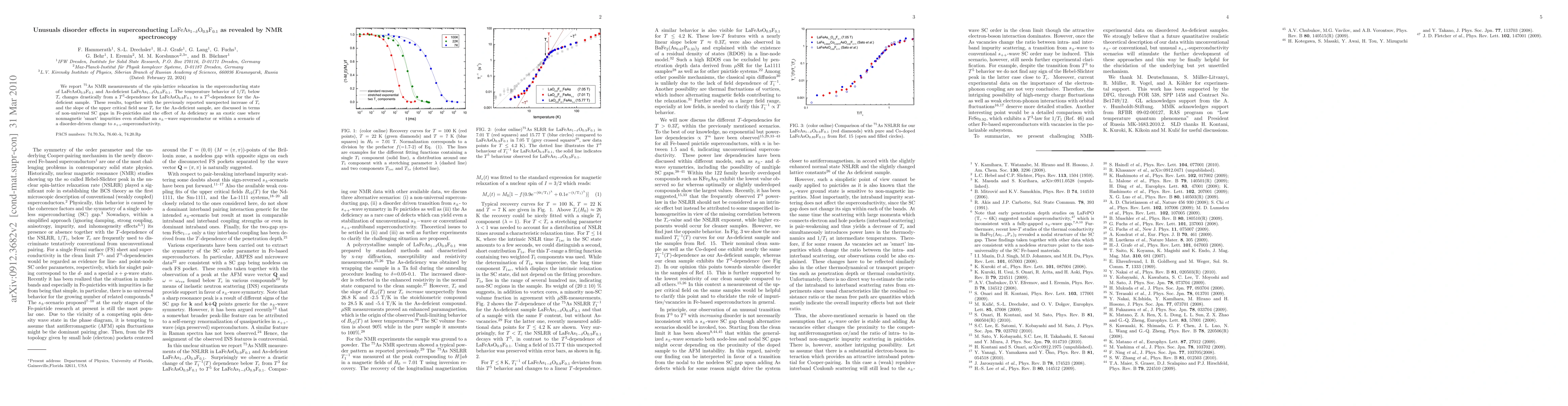 We report 75As NMR measurements of the spin-lattice relaxation in the superconducting state of LaFeAsO_(0.9)F_(0.1) and As-deficient LaFeAs_(1-d)O_0.9F_0.1. The temperature behavior of 1/T_1 below T_c changes drastically from a T^3-dependence for LaFeAsO_(0.9)F_(0.1) to a T^5-dependence for the As-deficient sample. These results, together with the previously reported unexpected increase of T_c and the slope of the upper critical field near T_c for the As-deficient sample, are discussed in terms of non-universal SC gaps in Fe-pnictides and the effect of As deficiency as an exotic case where nonmagnetic 'smart' impurities even stabilize an s+- wave superconductor or within a scenario of a disorder-driven change to s++ superconductivity.