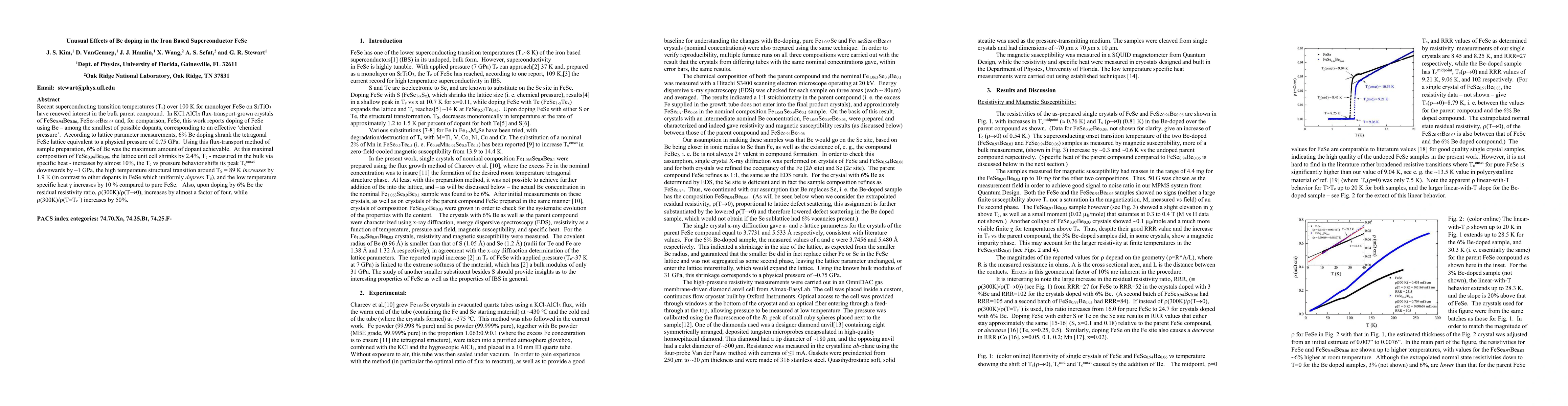 This study investigates the effects of beryllium doping in iron-based superconductor FeSe, finding that 6% Be doping shrinks the lattice and raises the superconducting transition temperature by nearly 10%, while also altering the structural and electronic properties significantly.