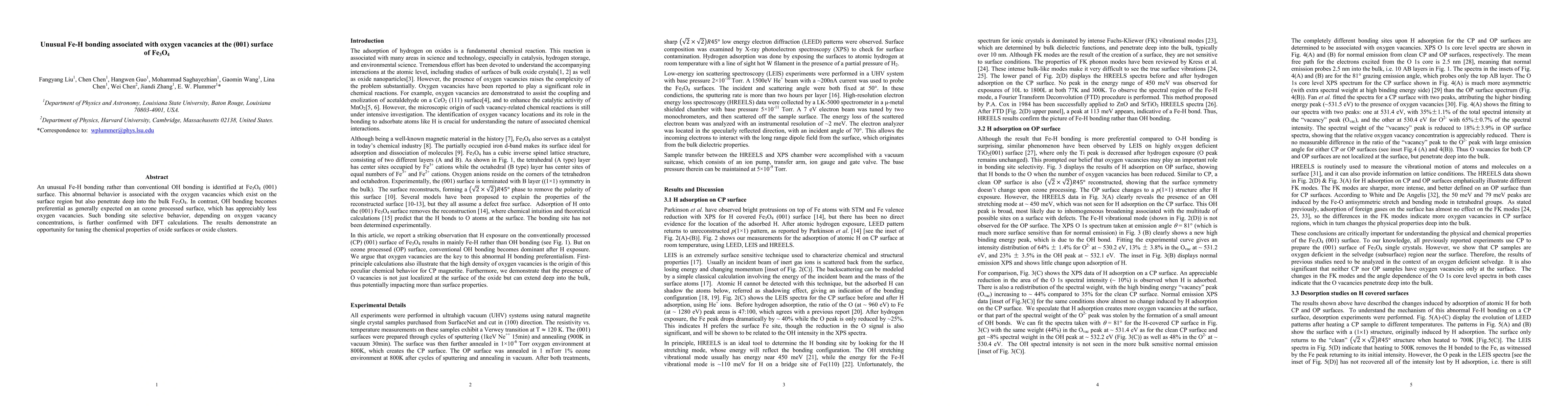 Researchers found unusual Fe-H bonding at the surface of iron oxide (Fe3O4) that is associated with oxygen vacancies, which can be tuned to change chemical properties.