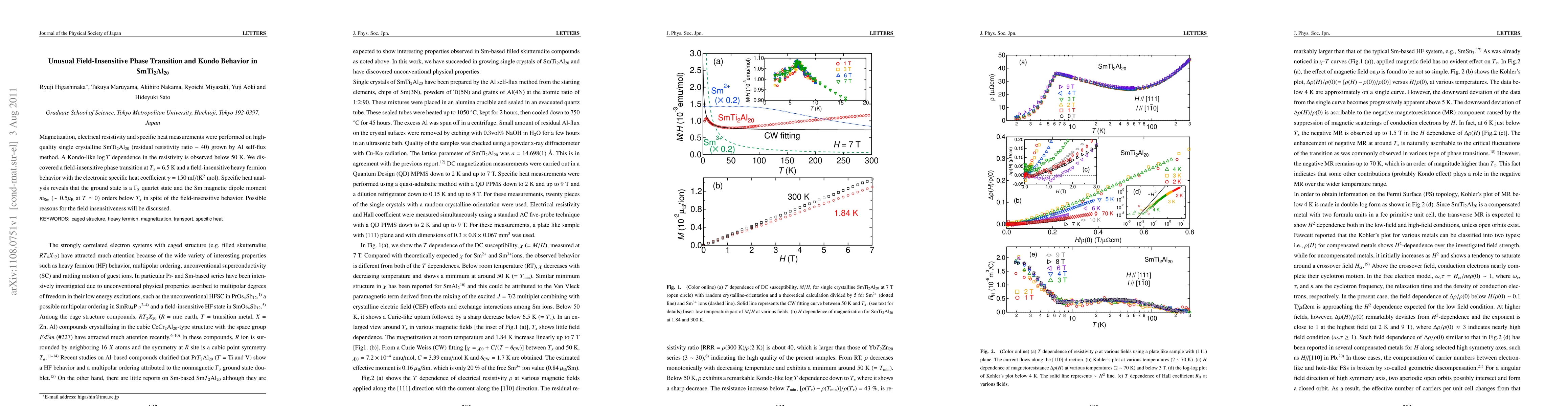 Researchers discovered a field-insensitive phase transition at 6.5 K in SmTi$_2$Al$_{20}$, exhibiting Kondo-like behavior with a heavy fermion state and an electronic specific heat coefficient of 150 mJ/(K$^{2}$ mol).