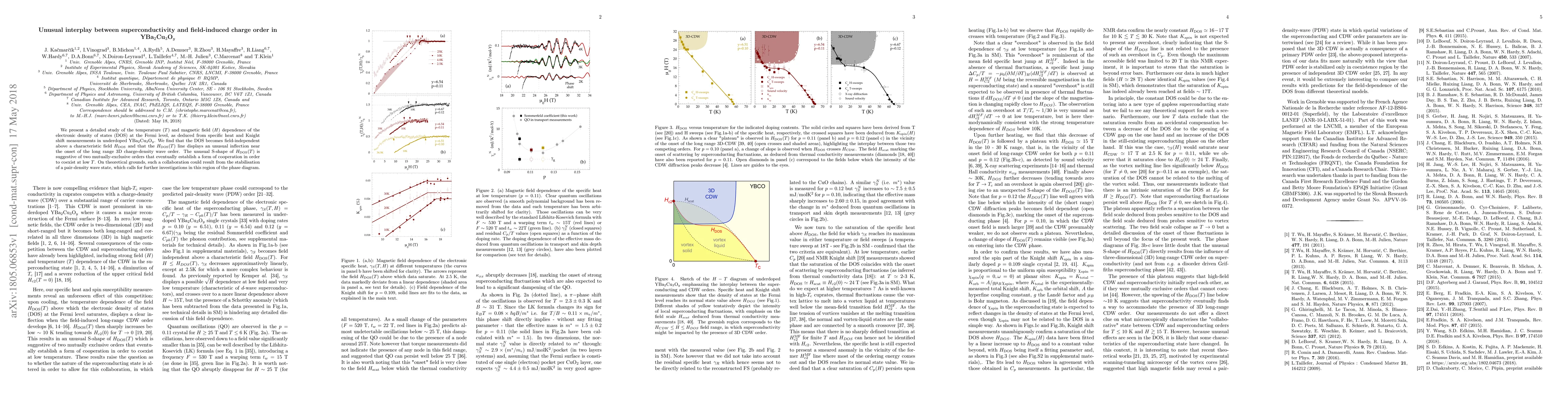 We present a detailed study of the temperature (T) and magnetic field (H) dependence of the electronic density of states (DOS) at the Fermi level, as deduced from specific heat and Knight shift measurements in underdoped YBa2Cu3Oy. We find that the DOS becomes field-independent above a characteristic field H_{DOS} and that the H_{DOS}(T) line displays an unusual inflection near the onset of the long range 3D charge-density wave order. The unusual S-shape of H_{DOS}(T) is suggestive of two mutually-exclusive orders that eventually establish a form of cooperation in order to coexist at low T. On theoretical grounds, such a collaboration could result from the stabilisation of a pair-density wave state, which calls for further investigations in this region of the phase diagram