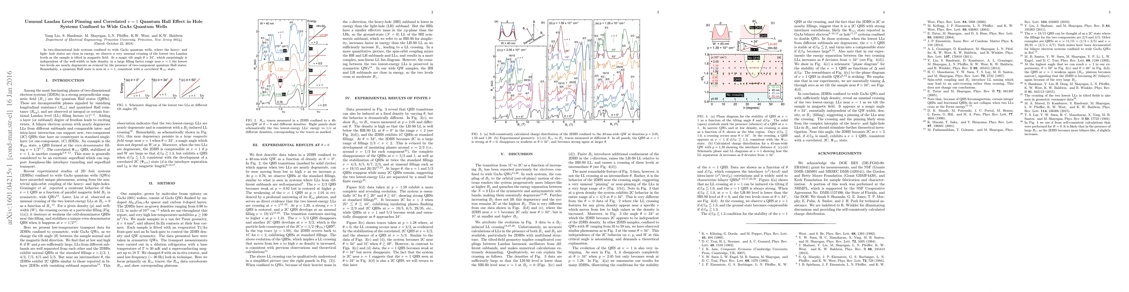 This research reveals an unusual Landau level crossing in two-dimensional hole systems in wide GaAs quantum wells, leading to nearly degenerate levels at a specific tilt angle. A correlated quantum Hall effect state is observed at $\nu=1$, indicating a \textit{correlated} $\Psi_{111}$ state.