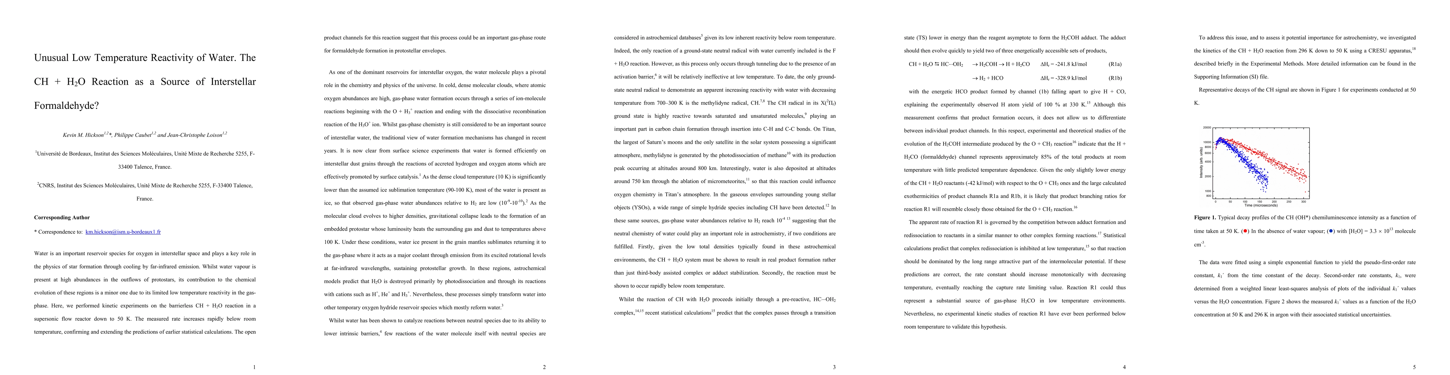 Water is an important reservoir species for oxygen in interstellar space and plays a key role in the physics of star formation through cooling by far-infrared emission. Whilst water vapour is present at high abundances in the outflows of protostars, its contribution to the chemical evolution of these regions is a minor one due to its limited low temperature reactivity in the gas-phase. Here, we performed kinetic experiments on the barrierless CH + H2O reaction in a supersonic flow reactor down to 50 K. The measured rate increases rapidly below room temperature, confirming and extending the predictions of earlier statistical calculations. The open product channels for this reaction suggest that this process could be an important gas-phase route for formaldehyde formation in protostellar envelopes.