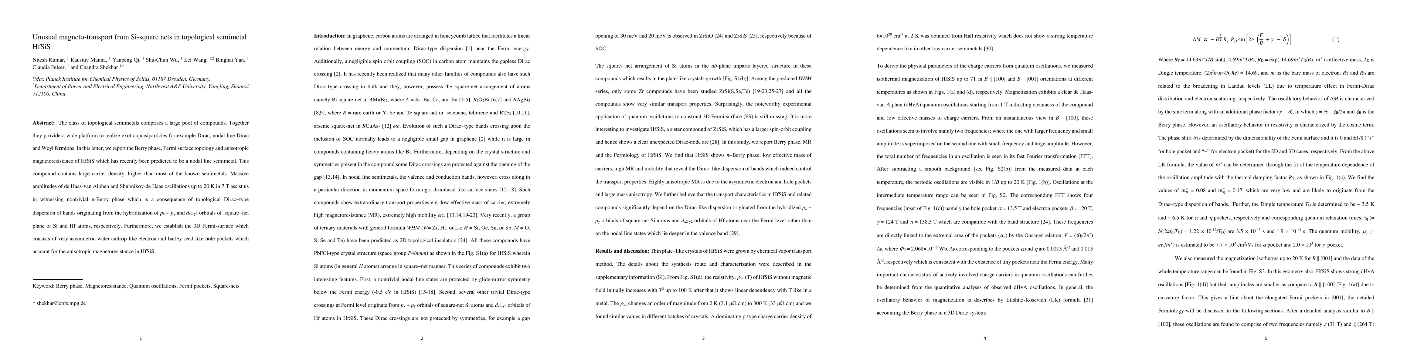 This paper investigates the unusual magneto-transport properties in HfSiS, a topological semimetal, revealing its nodal line semimetal characteristics through Berry phase, Fermi surface topology, and anisotropic magnetoresistance, with significant de Haas-van Alphen and Shubnikov-de Haas oscillations indicating complex band hybridization and asymmetric 3D Fermi surfaces.