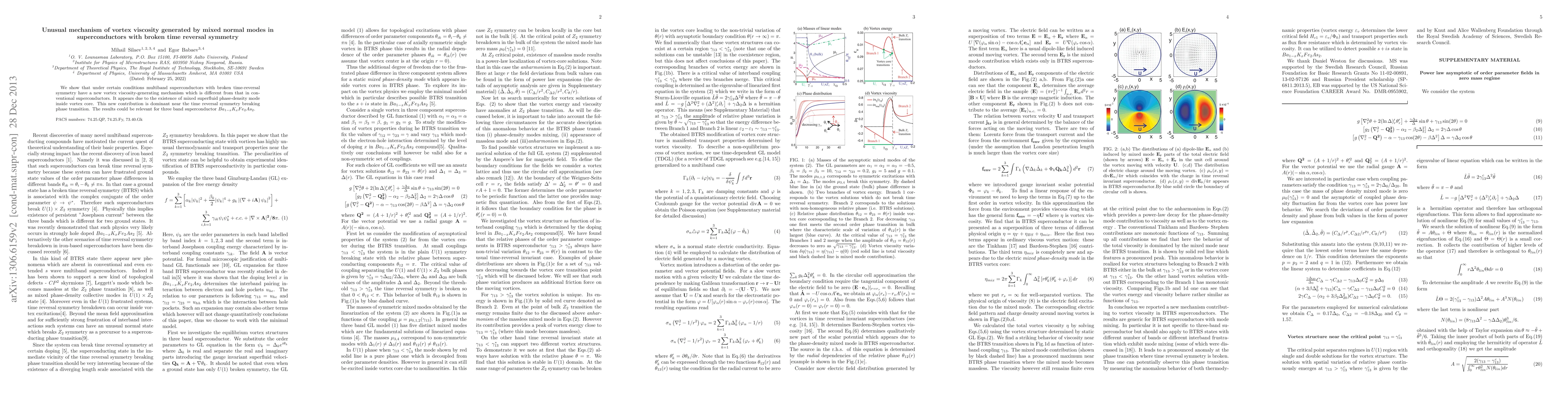We show that under certain conditions multiband superconductors with broken time-reversal symmetry have a new vortex viscosity-generating mechanism which is different from that in conventional superconductors. It appears due to the existence of mixed superfluid phase-density mode inside vortex core. This new contribution is dominant near the time reversal symmetry breaking phase transition. The results could be relevant for three band superconductor $Ba_{1-x}K_{x}Fe_2As_2$.