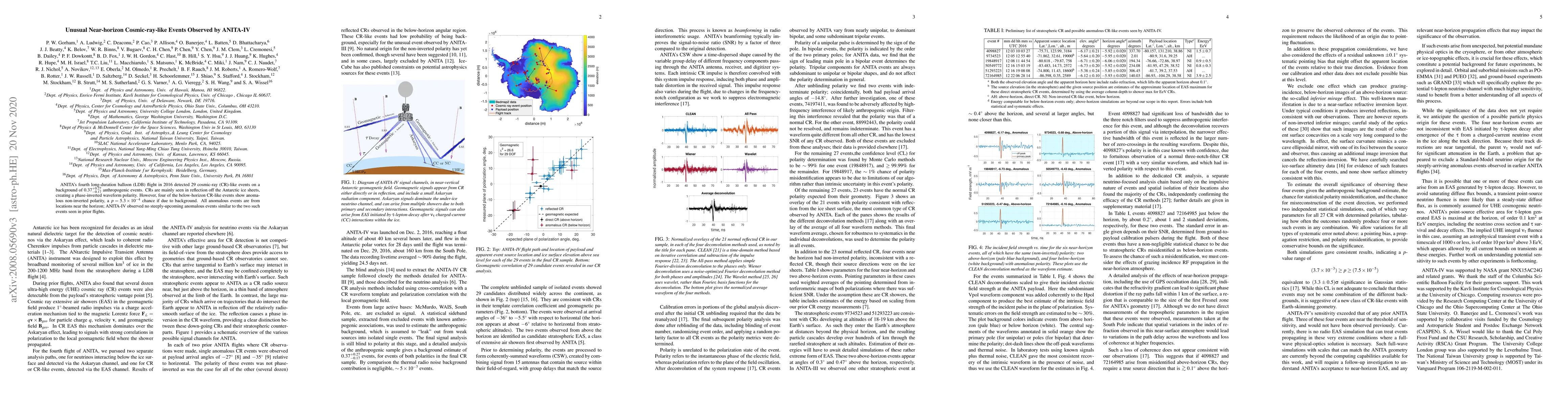 ANITA's fourth long-duration balloon flight in late 2016 detected 29 cosmic-ray (CR)-like events on a background of $0.37^{+0.27}_{-0.17}$ anthropogenic events. CRs are mainly seen in reflection off the Antarctic ice sheets, creating a characteristic phase-inverted waveform polarity. However, four of the below-horizon CR-like events show anomalous non-inverted polarity, a $p = 5.3 \times 10^{-4}$ chance if due to background. All anomalous events are from locations near the horizon; ANITA-IV observed no steeply-upcoming anomalous events similar to the two such events seen in prior flights.