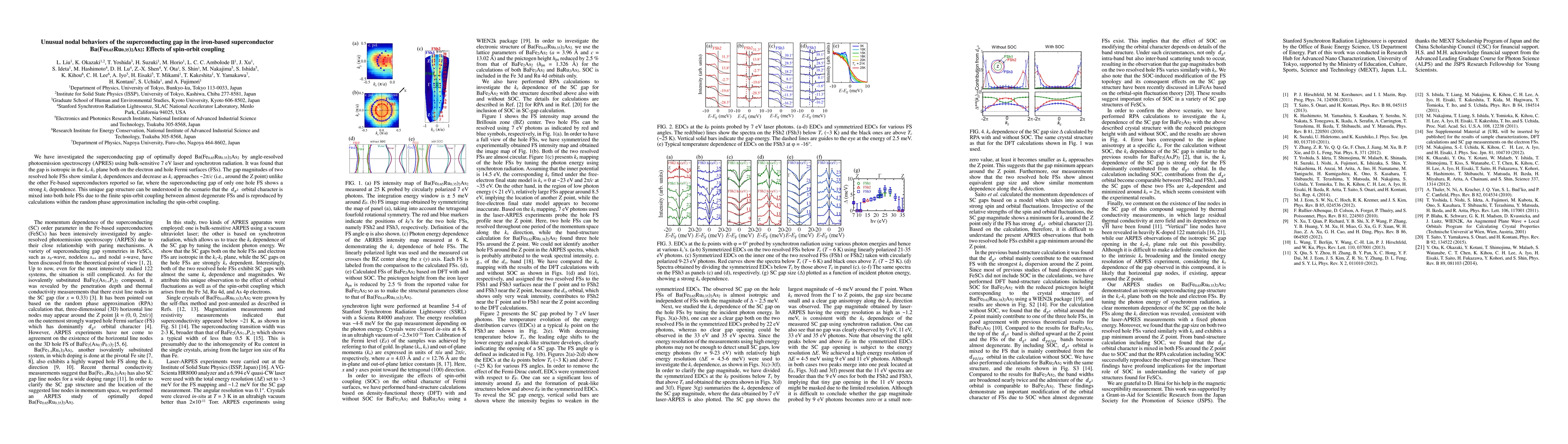 We have investigated the superconducting gap of optimally doped Ba(Fe$_{0.65}$Ru$_{0.35}$)$_2$As$_2$ by angle-resolved photoemission spectroscopy (APRES) using bulk-sensitive 7 eV laser and synchrotron radiation. It was found that the gap is isotropic in the $k_x$-$k_y$ plane both on the electron and hole Fermi surfaces (FSs). The gap magnitudes of two resolved hole FSs show similar $k_z$ dependences and decrease as $k_z$ approaches $\sim$ 2$\pi$/$c$ (i.e., around the Z point) unlike the other Fe-based superconductors reported so far, where the superconducting gap of only one hole FS shows a strong $k_z$ dependence. This unique gap structure can be understood in the scenario that the $d_{z^2}$ orbital character is mixed into both hole FSs due to the finite spin-orbit coupling between almost degenerate FSs and is reproduced by calculations within the random phase approximation including the spin-orbit coupling.