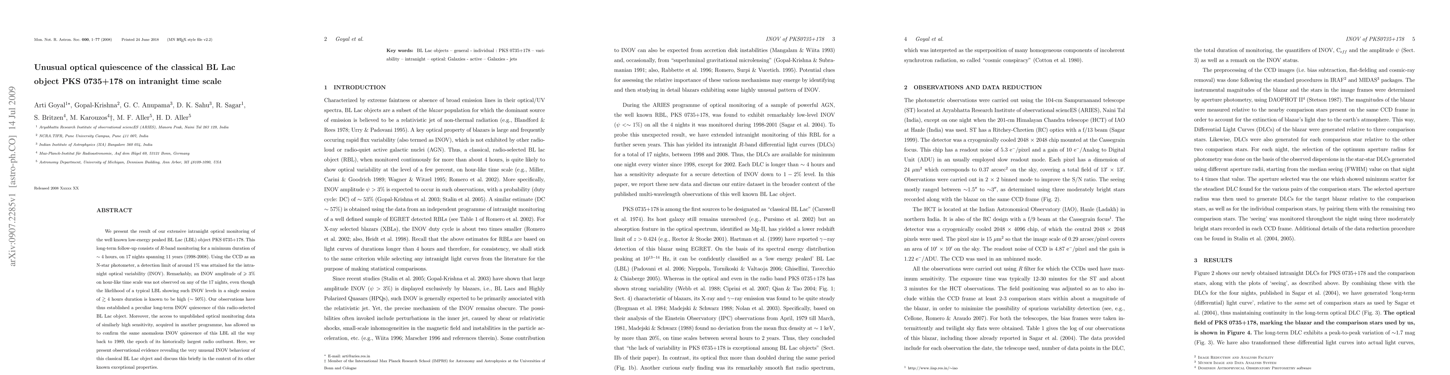 This paper reports extensive intranight optical monitoring of the BL Lac object PKS 0735+178 over 11 years, revealing an unusually low level of intranight optical variability despite high expected variability levels. The findings suggest a long-term quiescence in optical variability, a peculiar trait even when compared to other BL Lac objects.