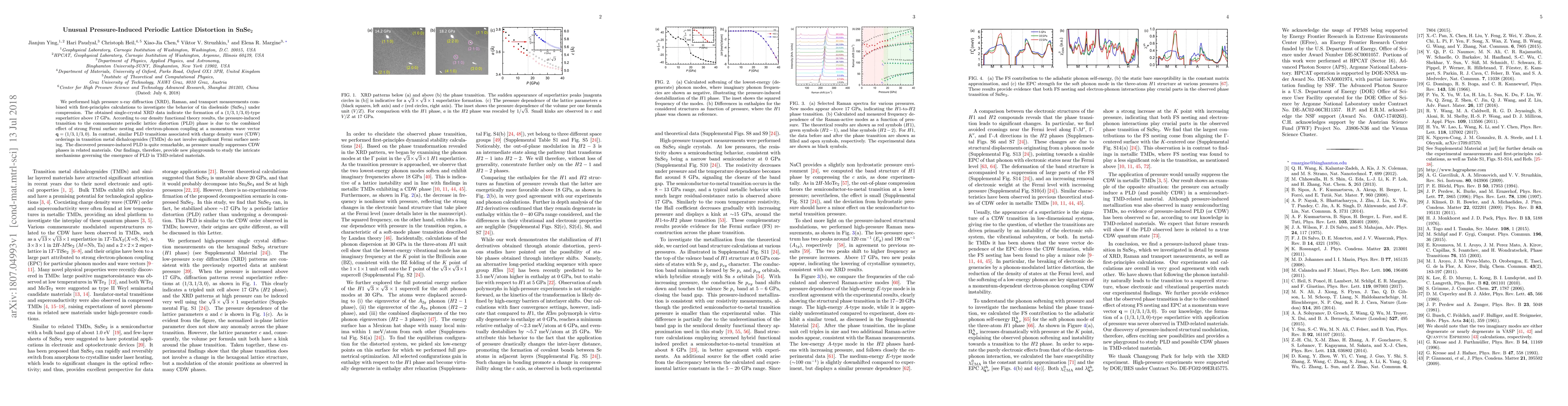 Researchers discovered a pressure-induced periodic lattice distortion in SnSe$_2$, a material that forms a superlattice at high pressures, which is unusual given the typical suppression of similar phases under pressure.