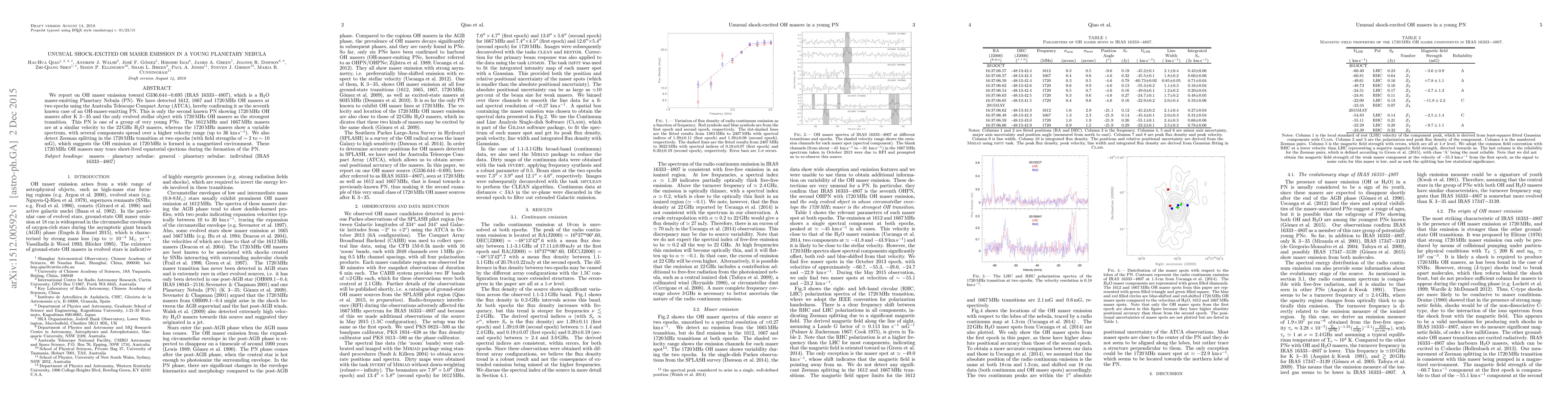 We report on OH maser emission toward G336.644-0.695 (IRAS 16333-4807), which is a H2O maser-emitting Planetary Nebula (PN). We have detected 1612, 1667 and 1720 MHz OH masers at two epochs using the Australia Telescope Compact Array (ATCA), hereby confirming it as the seventh known case of an OH-maser-emitting PN. This is only the second known PN showing 1720 MHz OH masers after K 3-35 and the only evolved stellar object with 1720 MHz OH masers as the strongest transition. This PN is one of a group of very young PNe. The 1612 MHz and 1667 MHz masers are at a similar velocity to the 22 GHz H2O masers, whereas the 1720 MHz masers show a variable spectrum, with several components spread over a higher velocity range (up to 36 km/s). We also detect Zeeman splitting in the 1720 MHz transition at two epochs (with field strengths of ~2 to ~10 mG), which suggests the OH emission at 1720 MHz is formed in a magnetized environment. These 1720 MHz OH masers may trace short-lived equatorial ejections during the formation of the PN.