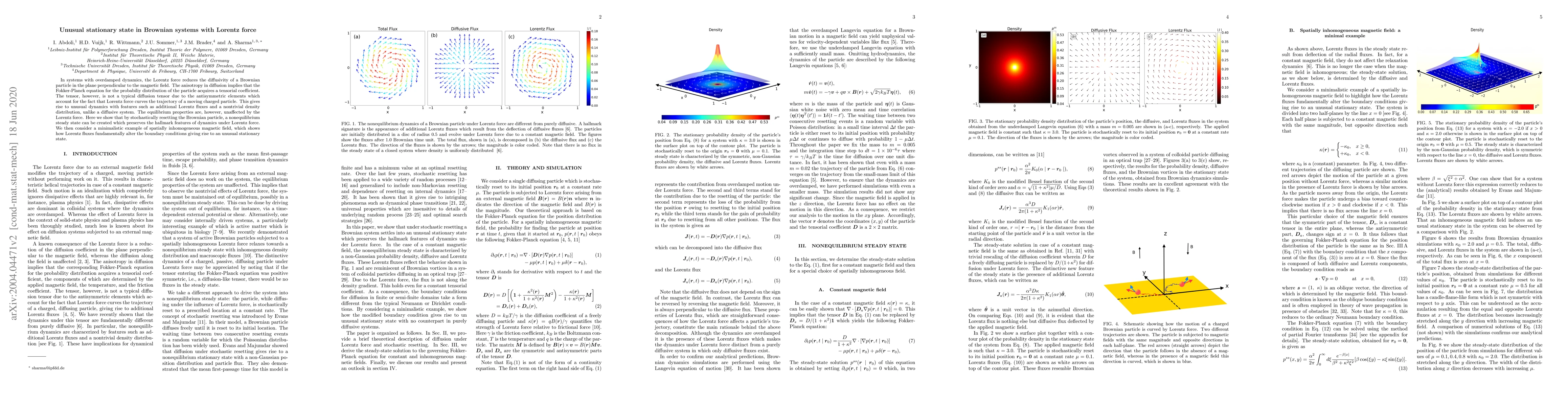 This paper investigates the dynamics of Brownian particles under Lorentz force, revealing an anisotropic diffusion tensor with antisymmetric elements that alter particle trajectories. By stochastically resetting the particle, a nonequilibrium steady state is achieved, showcasing unique features distinct from typical diffusion systems.