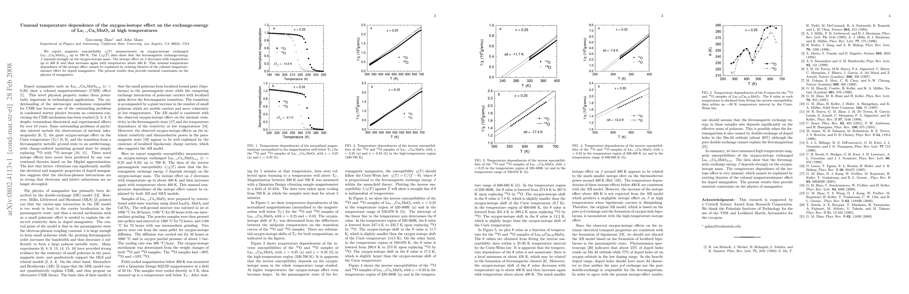 We report magnetic susceptibility $\chi(T)$ measurements on oxygen-isotope exchanged La$_{1-x}$Ca$_{x}$MnO$_{3+y}$ up to 700 K. The $1/\chi(T)$ data show that the ferromagnetic exchange-energy $J$ depends strongly on the oxygen-isotope mass. The isotope effect on $J$ decreases with temperature up to 400 K and then increases again with temperature above 400 K. This unusual temperature dependence of the isotope effect cannot be explained by existing theories of the colossal magnetoresistance effect for doped manganites. The present results thus provide essential constraints on the physics of manganites.