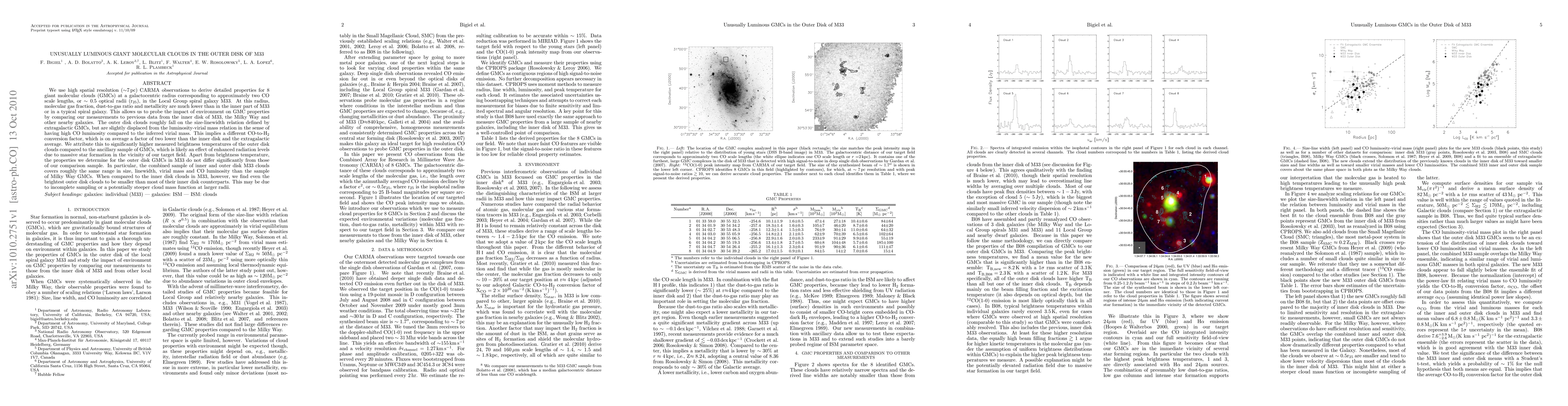This study uses high-resolution observations to analyze 8 giant molecular clouds in the outer disk of M33, finding they exhibit higher CO luminosity compared to their virial mass, suggesting a lower CO-to-H2 conversion factor. The enhanced brightness temperatures likely result from increased radiation due to nearby star formation.