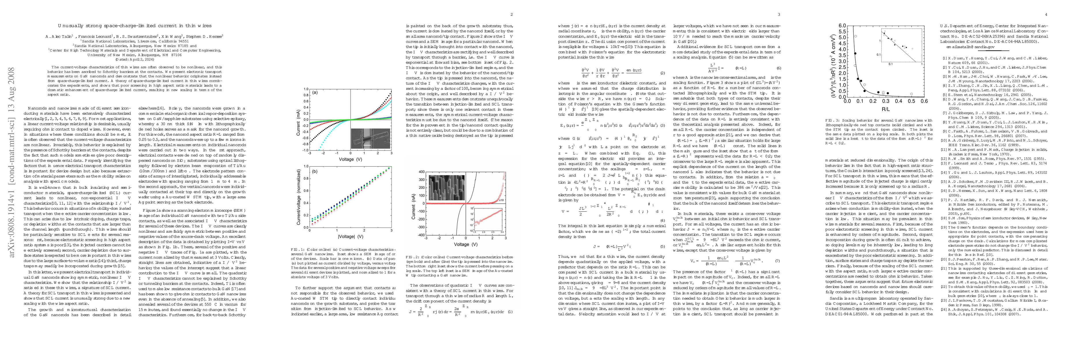 This paper investigates the nonlinear current-voltage characteristics in thin GaN nanorods, attributing the behavior to space-charge-limited current rather than Schottky barriers. Theoretical analysis reveals that poor screening in high aspect ratio materials significantly enhances this current, leading to a new scaling relationship based on aspect ratio.