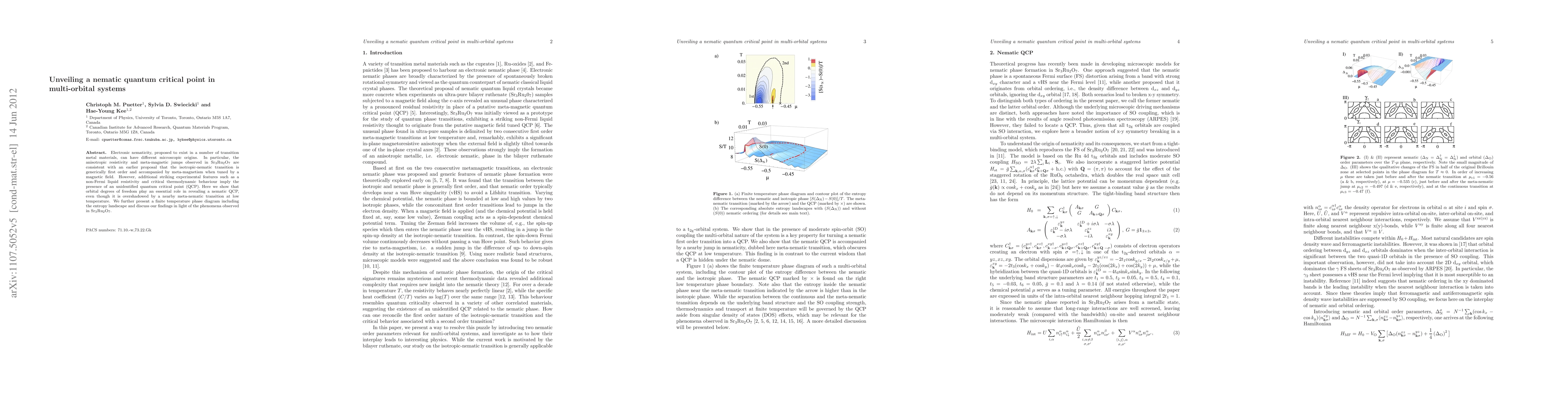 This paper reveals a nematic quantum critical point in multi-orbital systems, demonstrating that orbital degrees of freedom are crucial for its identification. The study highlights the presence of a meta-nematic transition in Sr3Ru2O7, alongside a non-Fermi liquid resistivity, suggesting a complex phase diagram with significant thermodynamic behavior.