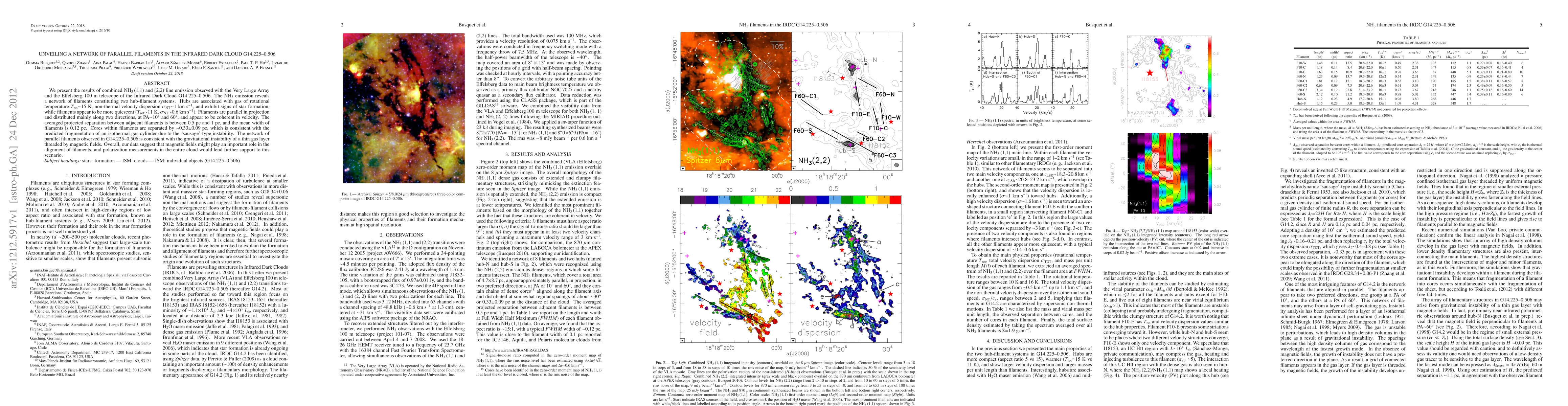 This study reveals a network of parallel filaments in the Infrared Dark Cloud G14.225-0.506 using NH3 line emissions, showing two hub-filament systems aligned along two directions. The hubs exhibit signs of star formation, while filaments are more quiescent, suggesting magnetic fields may align the filaments.