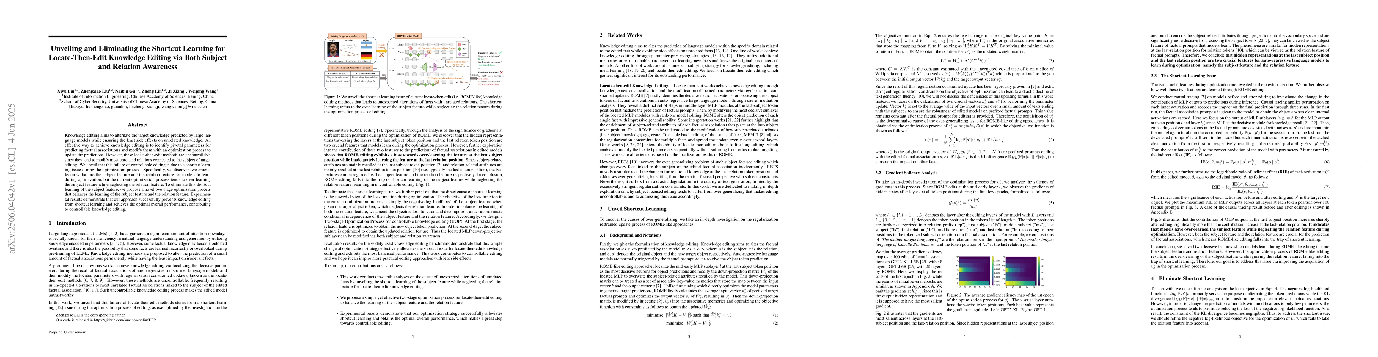 Researchers identified a shortcut learning issue in knowledge editing methods, proposing a two-stage optimization process to balance subject and relation features for more controllable editing.