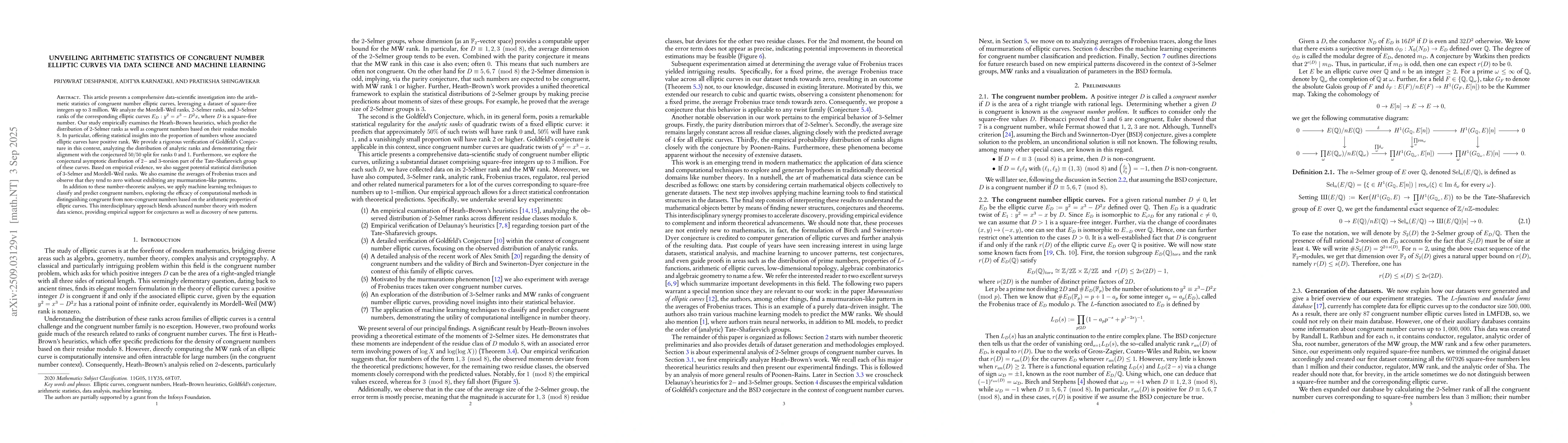 This article presents a comprehensive data-scientific investigation into the arithmetic statistics of congruent number elliptic curves, leveraging a dataset of square-free integers up to $3$ million. We analyze the Mordell-Weil ranks, 2-Selmer ranks, and 3-Selmer ranks of the corresponding elliptic curves $E_D: y^2 = x^3 - D^2x$, where $D$ is a square-free number. Our study empirically examines the Heath-Brown heuristics, which predict the distribution of $2$-Selmer ranks as well as congruent numbers based on their residue modulo $8$. In particular, offering statistical insights into the proportion of numbers whose associated elliptic curves have positive rank. We provide a rigorous verification of Goldfeld's Conjecture in this context, analyzing the distribution of analytic ranks and demonstrating their alignment with the conjectured $50/50$ split for ranks $0$ and $1$. Furthermore, we explore the conjectural asymptotic distribution of $2-$ and $3$-torsion part of the Tate-Shafarevich group of these curves. Based on empirical evidence, we also suggest potential statistical distribution of $3$-Selmer and Mordell-Weil ranks. We also examine the averages of Frobenius traces and observe that they tend to zero without exhibiting any murmuration-like patterns. In addition to these number-theoretic analyses, we apply machine learning techniques to classify and predict congruent numbers, exploring the efficacy of computational methods in distinguishing congruent from non-congruent numbers based on the arithmetic properties of elliptic curves. This interdisciplinary approach blends advanced number theory with modern data science, providing empirical support for conjectures as well as discovery of new patterns.