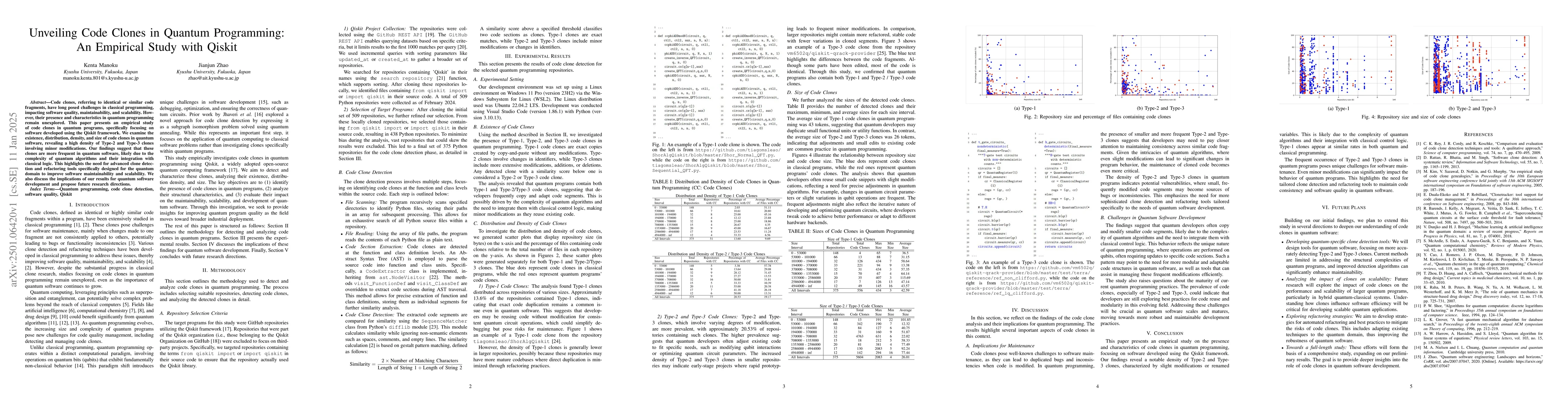 This study investigates the prevalence of code clones in quantum programming using Qiskit, revealing a high density of minor modification clones. The findings indicate a need for specialized tools to enhance maintainability and scalability in quantum software.