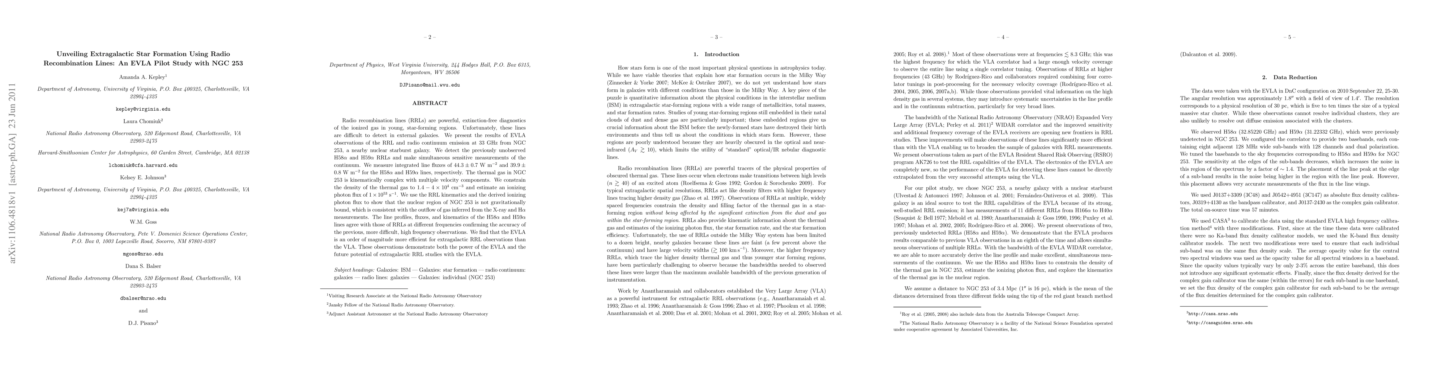 This study utilizes EVLA observations to detect previously unobserved radio recombination lines (RRLs) in NGC 253, revealing complex kinematics and high densities of thermal gas. The findings suggest the nuclear region is not gravitationally bound, consistent with gas outflows, and demonstrate the EVLA's superior efficiency for extragalactic RRL studies.