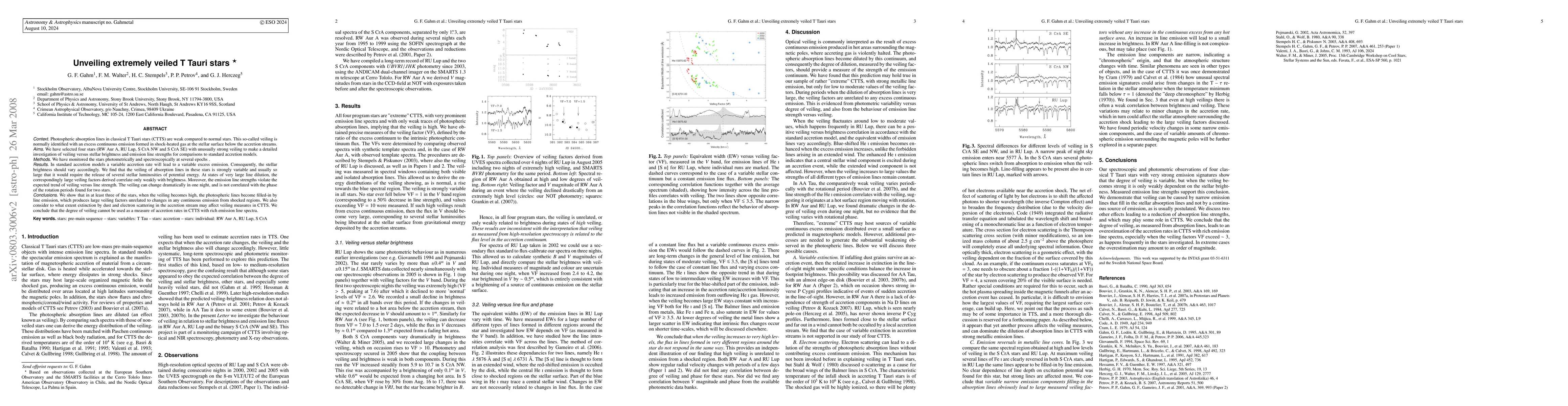 Researchers studied four extremely veiled T Tauri stars, finding that their absorption lines varied strongly and unexpectedly, contradicting previous models of accretion rates.