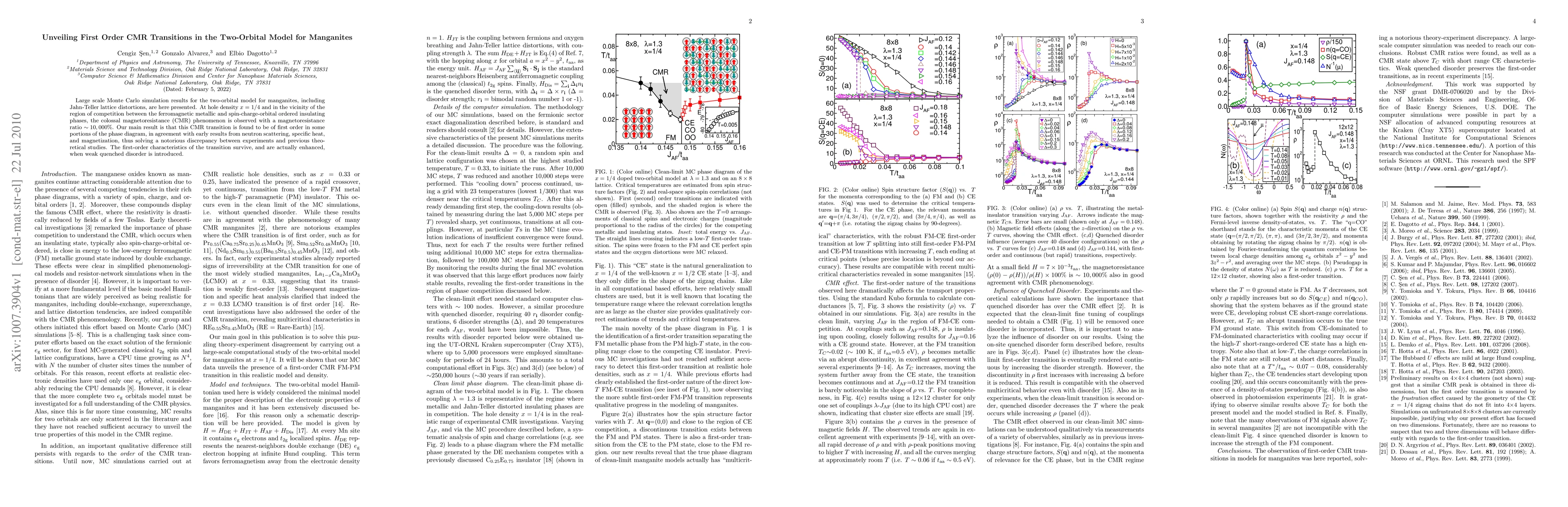 This paper reports Monte Carlo simulations revealing first-order colossal magnetoresistance (CMR) transitions in the two-orbital model for manganites, resolving discrepancies between experimental findings and prior theoretical studies. The simulations show a magnetoresistance ratio of ~10,000% near the boundary between competing ferromagnetic metallic and spin-charge-orbital ordered phases, with first-order transition characteristics enhanced by weak quenched disorder.