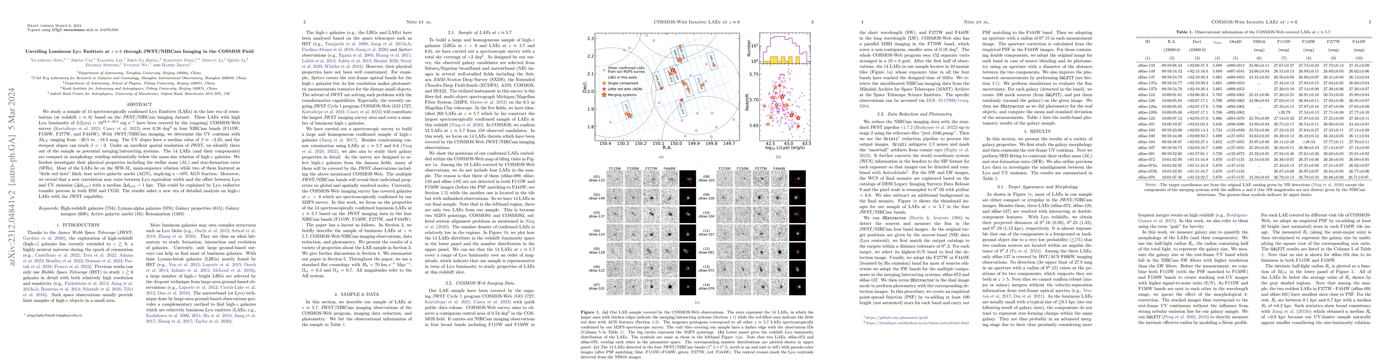 We study a sample of 14 spectroscopically confirmed Ly$\alpha$ Emitters (LAEs) in the late era of reionization (at redshift $z\approx6$) based on the JWST/NIRCam imaging dataset. These LAEs with high Ly$\alpha$ luminosity of $L$(Ly$\alpha$) $\sim10^{42.4-43.4}$ erg s$^{-1}$ have been covered by the (ongoing) COSMOS-Web survey (Kartaltepe et al. 2021; Casey et al. 2022) over $0.28$ deg$^2$ in four NIRCam bands (F115W, F150W, F277W, and F444W). With JWST imaging, we determine the UV continua with $M_{\rm UV}$ ranging from ${-}20.5$ to ${-}18.5$ mag. The UV slopes have a median value of $\beta \approx-2.35$, and the steepest slope can reach $\beta<-3$. Under an excellent spatial resolution of JWST, we identify three out of the sample as potential merging/interacting systems. The 14 LAEs (and their components) are compact in morphology residing substantially below the mass-size relation of high-$z$ galaxies. We further investigate the stellar mass ($M_*$) and star-formation rates (SFRs). Most of the LAEs lie on the SFR-$M_*$ main-sequence relation while two of them featured as "little red dots" likely host active galactic nuclei (AGN), implying a ${\sim}10\%$ AGN fraction. Moreover, we reveal that a new correlation may exist between Ly$\alpha$ equivalent width and the offset between Ly$\alpha$ and UV emission ($\Delta d_{\rm Ly\alpha}$) with a median $\Delta d_{\rm Ly\alpha} \sim 1$ kpc. This could be explained by Ly$\alpha$ radiative transfer process in both ISM and CGM. The results usher a new era of detailed analysis on high-$z$ LAEs with the JWST capability.