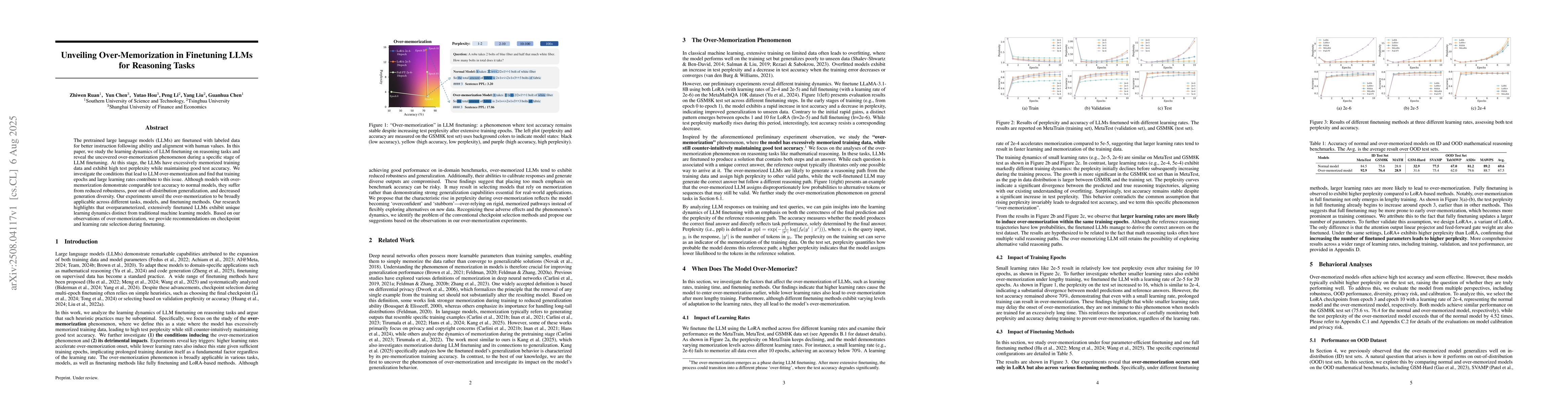 The pretrained large language models (LLMs) are finetuned with labeled data for better instruction following ability and alignment with human values. In this paper, we study the learning dynamics of LLM finetuning on reasoning tasks and reveal the uncovered over-memorization phenomenon during a specific stage of LLM finetuning. At this stage, the LLMs have excessively memorized training data and exhibit high test perplexity while maintaining good test accuracy. We investigate the conditions that lead to LLM over-memorization and find that training epochs and large learning rates contribute to this issue. Although models with over-memorization demonstrate comparable test accuracy to normal models, they suffer from reduced robustness, poor out-of-distribution generalization, and decreased generation diversity. Our experiments unveil the over-memorization to be broadly applicable across different tasks, models, and finetuning methods. Our research highlights that overparameterized, extensively finetuned LLMs exhibit unique learning dynamics distinct from traditional machine learning models. Based on our observations of over-memorization, we provide recommendations on checkpoint and learning rate selection during finetuning.