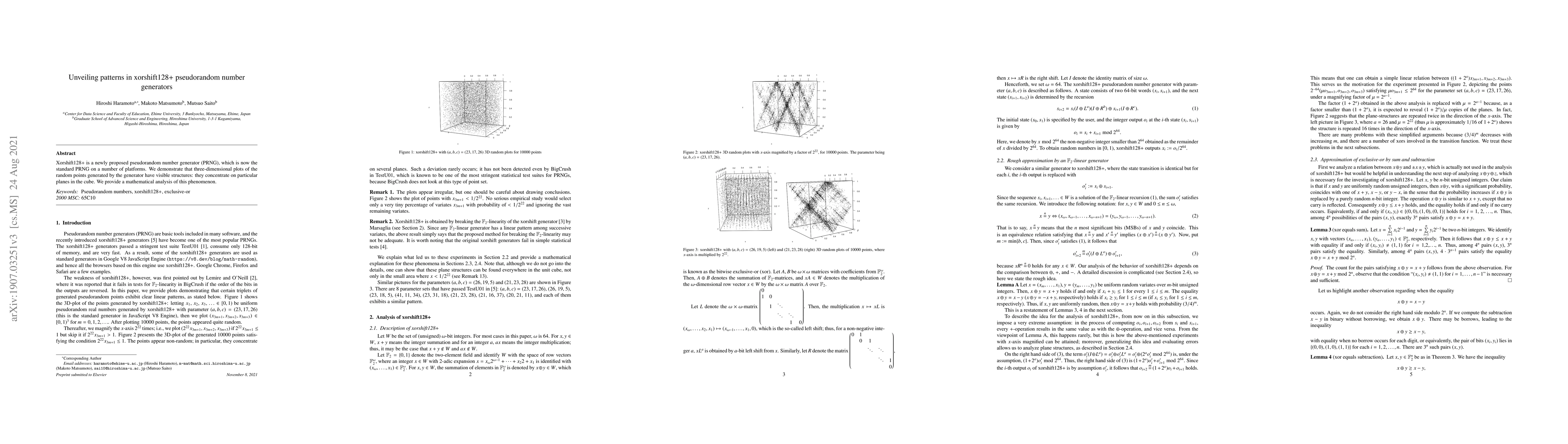 Xorshift128+ is a newly proposed pseudorandom number generator (PRNG), which is now the standard PRNG on a number of platforms. We demonstrate that three-dimensional plots of the random points generated by the generator have visible structures: they concentrate on particular planes in the cube. We provide a mathematical analysis of this phenomenon.