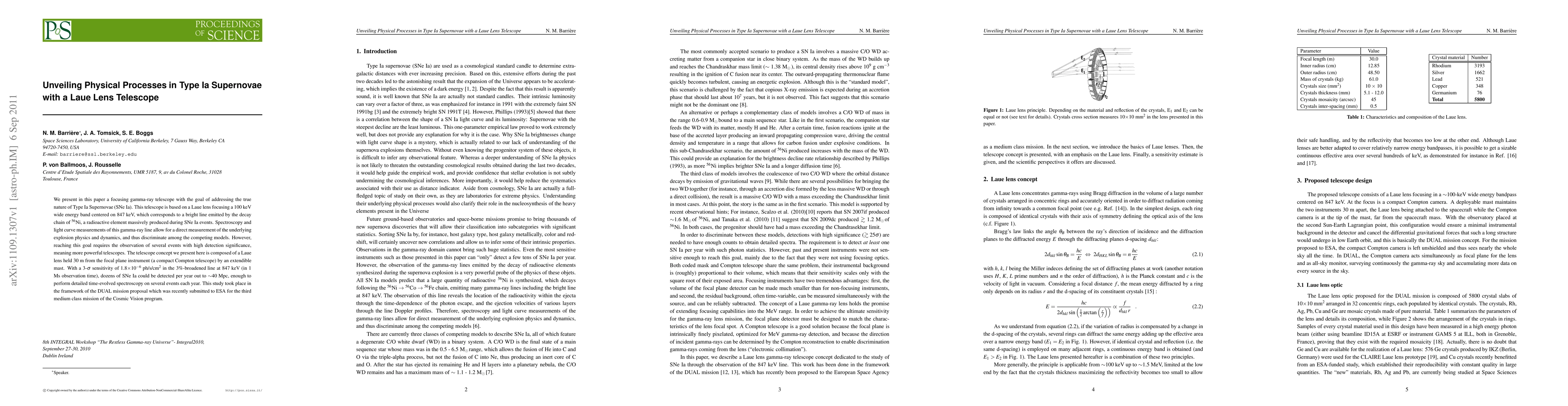 This research proposes a specialized gamma-ray telescope using a Laue lens to directly study the explosion physics of Type Ia supernovae by detecting specific gamma-ray lines from radioactive decay. The design aims to observe multiple supernovae annually within 40 million parsecs, enabling detailed insights into their explosion mechanisms.