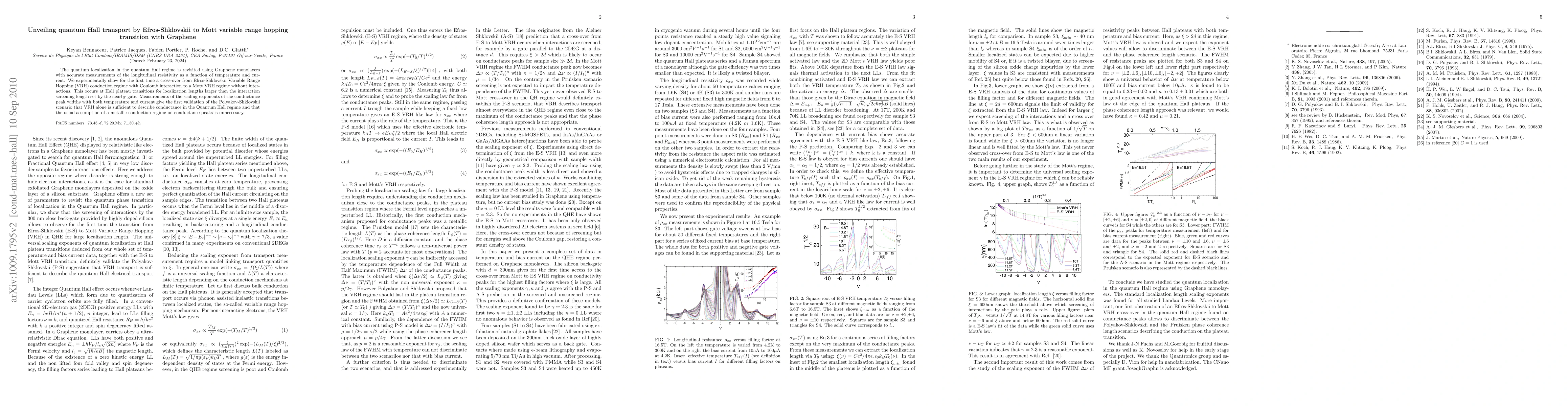 The paper investigates the quantum Hall transport in Graphene monolayers, revealing a transition from Efros-Shklovskii Variable Range Hopping to Mott Variable Range Hopping at Hall plateau transitions, validated by scaling exponent measurements. This transition highlights that VRH suffices for conductance without requiring a metallic conduction regime.