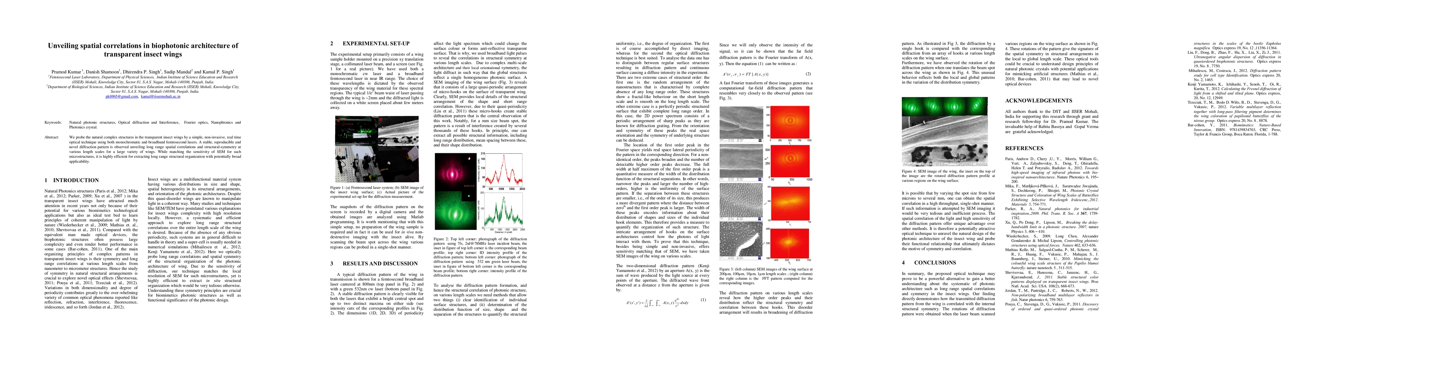 Researchers used lasers to analyze the microscopic structure of insect wings, revealing long-range spatial correlations and symmetry in their biophotonic architecture. This non-invasive technique offers a high efficiency method for studying microstructures with broad applicability.