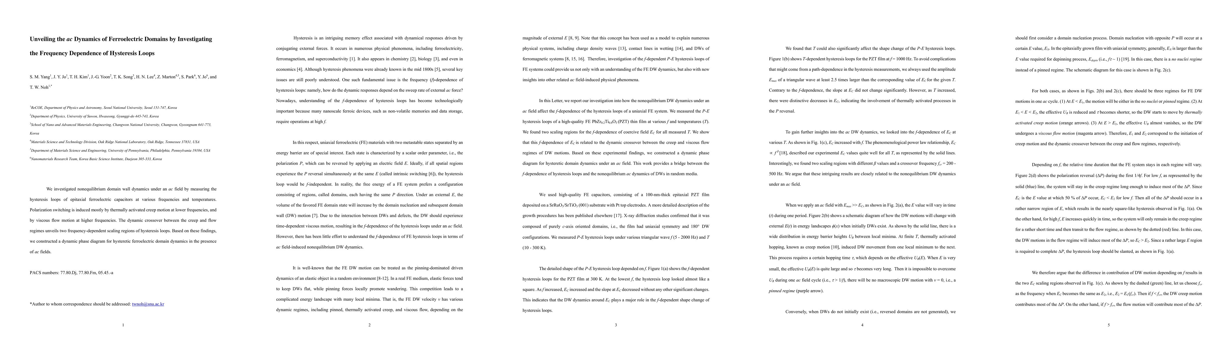 This study investigates the frequency-dependent hysteresis loops of ferroelectric capacitors to reveal the dynamics of domain wall motion under alternating current fields. The research identifies two scaling regions for hysteresis loops, corresponding to thermally-activated creep at lower frequencies and viscous flow at higher frequencies, leading to a dynamic phase diagram of ferroelectric domain dynamics.