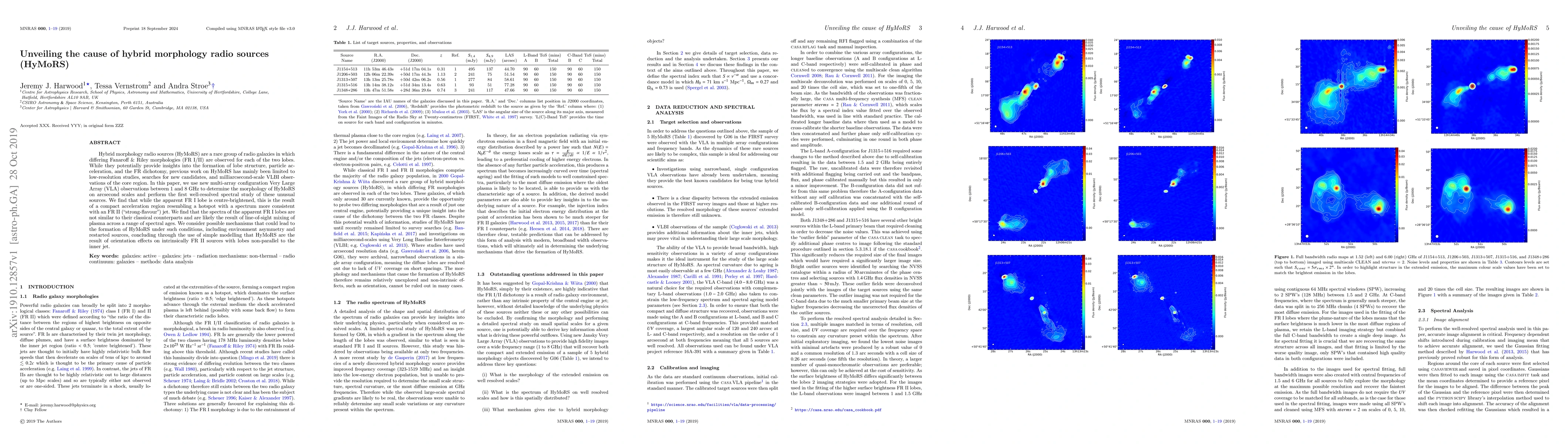 Hybrid morphology radio sources (HyMoRS) are a rare group of radio galaxies in which differing Fanaroff & Riley morphologies (FR I/II) are observed for each of the two lobes. While they potentially provide insights into the formation of lobe structure, particle acceleration, and the FR dichotomy, previous work on HyMoRS has mainly been limited to low-resolution studies, searches for new candidates, and milliarcsecond-scale VLBI observations of the core region. In this paper, we use new multi-array configuration Very Large Array (VLA) observations between 1 and 8 GHz to determine the morphology of HyMoRS on arcsecond scales and perform the first well-resolved spectral study of these unusual sources. We find that while the apparent FR I lobe is centre-brightened, this is the result of a compact acceleration region resembling a hotspot with a spectrum more consistent with an FR II ("strong-flavour") jet. We find that the spectra of the apparent FR I lobes are not similar to their classical counterparts and are likely the result of line-of-sight mixing of plasma across a range of spectral ages. We consider possible mechanisms that could lead to the formation of HyMoRS under such conditions, including environment asymmetry and restarted sources, concluding through the use of simple modelling that HyMoRS are the result of orientation effects on intrinsically FR II sources with lobes non-parallel to the inner jet.