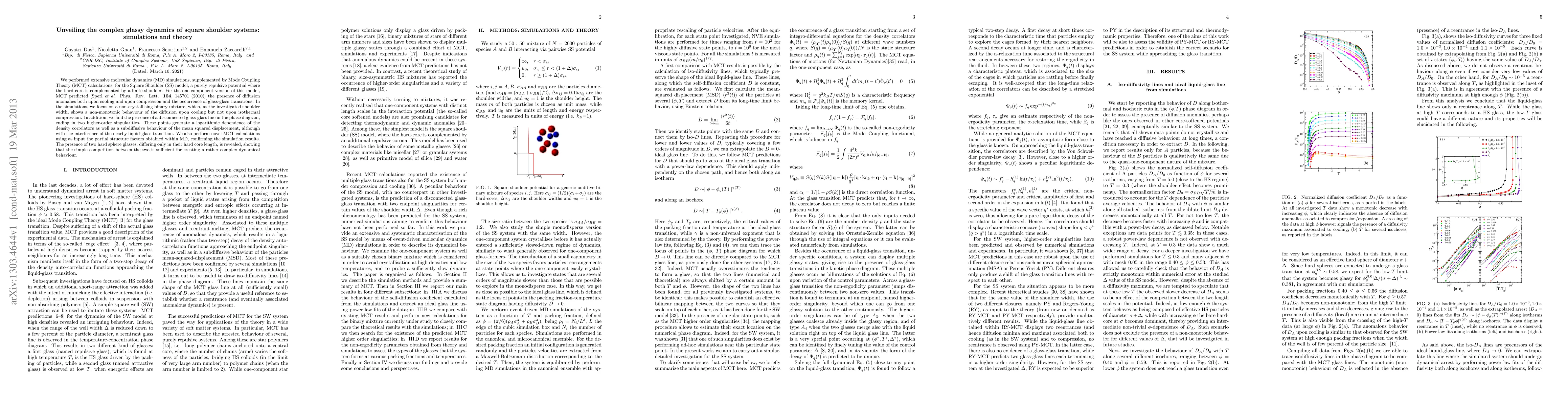 We performed extensive molecular dynamics (MD) simulations, supplemented by Mode Coupling Theory (MCT) calculations, for the Square Shoulder (SS) model, a purely repulsive potential where the hard-core is complemented by a finite shoulder. For the one-component version of this model, MCT predicted [Sperl {\it et al.} Phys. Rev. Lett. {\bf 104}, 145701 (2010)] the presence of diffusion anomalies both upon cooling and upon compression and the occurrence of glass-glass transitions. In the simulations, we focus on a non-crystallising binary mixture, which, at the investigated shoulder width, shows a non-monotonic behaviour of the diffusion upon cooling but not upon isothermal compression. In addition, we find the presence of a disconnected glass-glass line in the phase diagram, ending in two higher-order singularities. These points generate a logarithmic dependence of the density correlators as well as a subdiffusive behaviour of the mean squared displacement, although with the interference of the nearby liquid-glass transition. We also perform novel MCT calculations using as input the partial structure factors obtained within MD, confirming the simulation results. The presence of two hard sphere glasses, differing only in their hard core length, is revealed, showing that the simple competition between the two is sufficient for creating a rather complex dynamical behaviour.