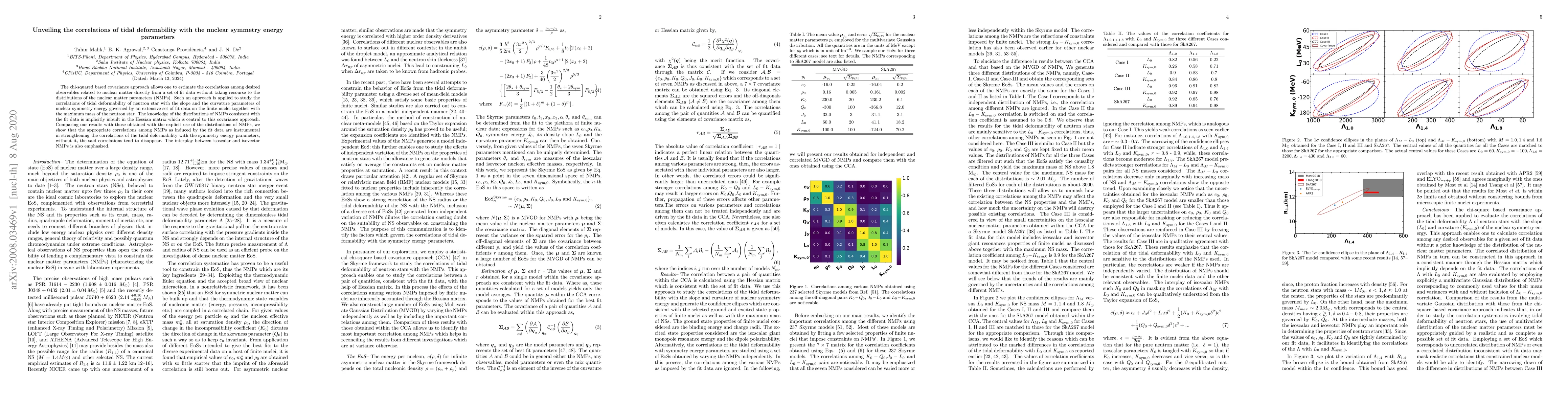 This paper uses a chi-squared covariance approach to estimate correlations between neutron star tidal deformability and nuclear symmetry energy parameters, showing that these correlations are strengthened by the implicit knowledge of nuclear matter parameters in the Hessian matrix, compared to explicit parameter distributions. The study highlights the interplay between isoscalar and isovector nuclear matter parameters.
